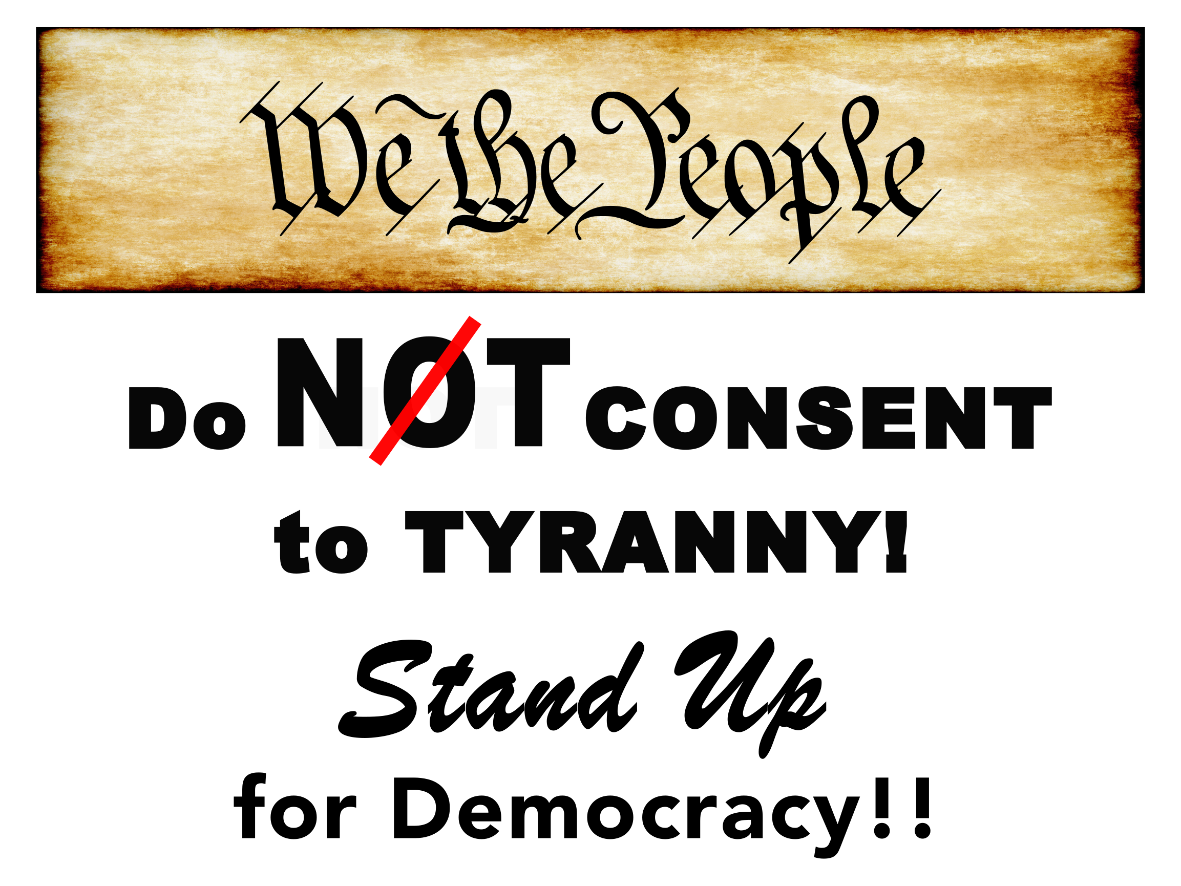 SIGN: “Wee the people Do NOT CONSENT to TYRANNY! - Stand UP for Democracy!!” 24”x18” landscape orientation. CLICK HERE to download the full size files: