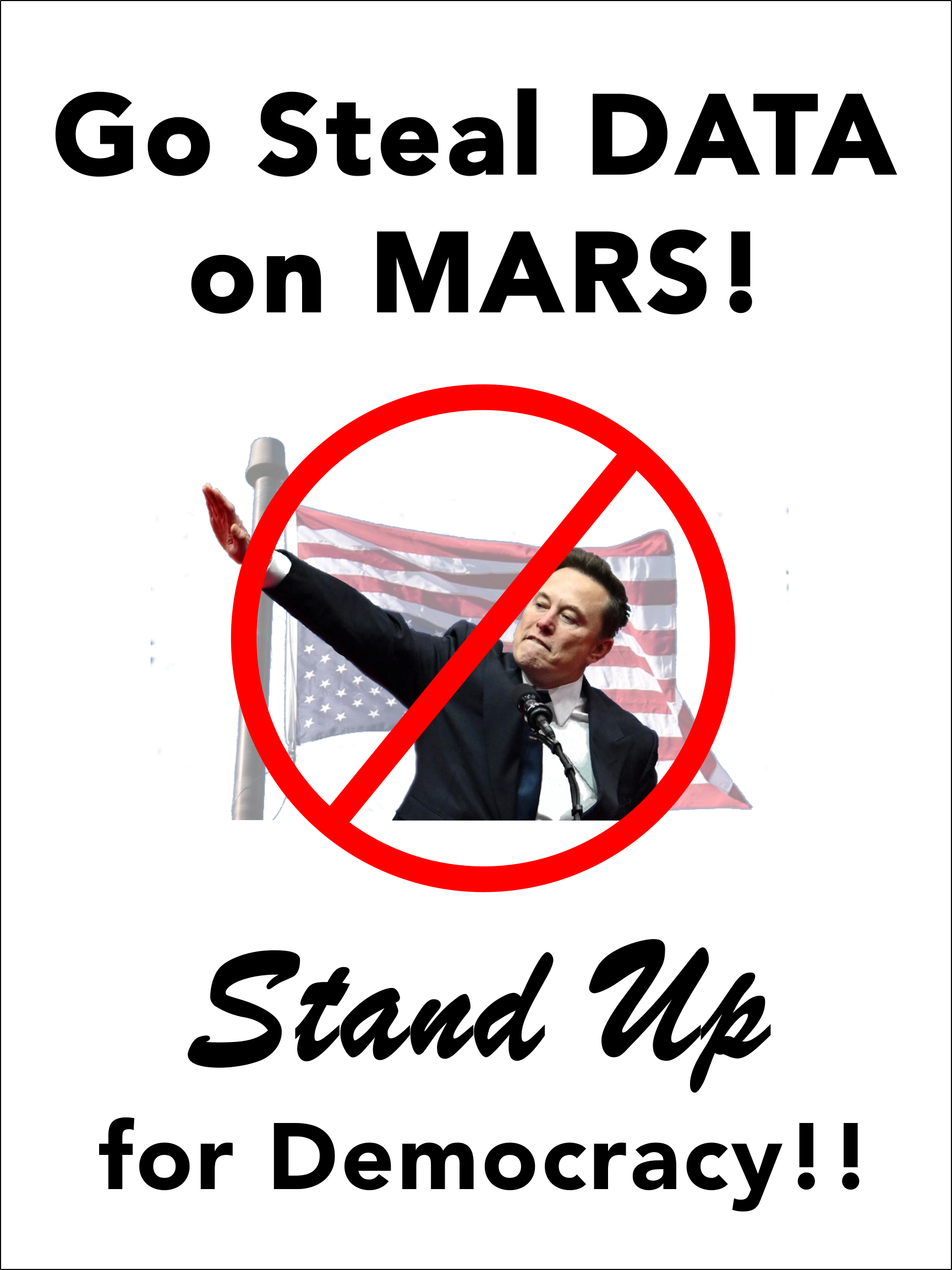 SIGN: “Go Steal DATA on Mars - Stand UP for Democracy.” 18”x24” portrait orientation. CLICK HERE to download the full size files: