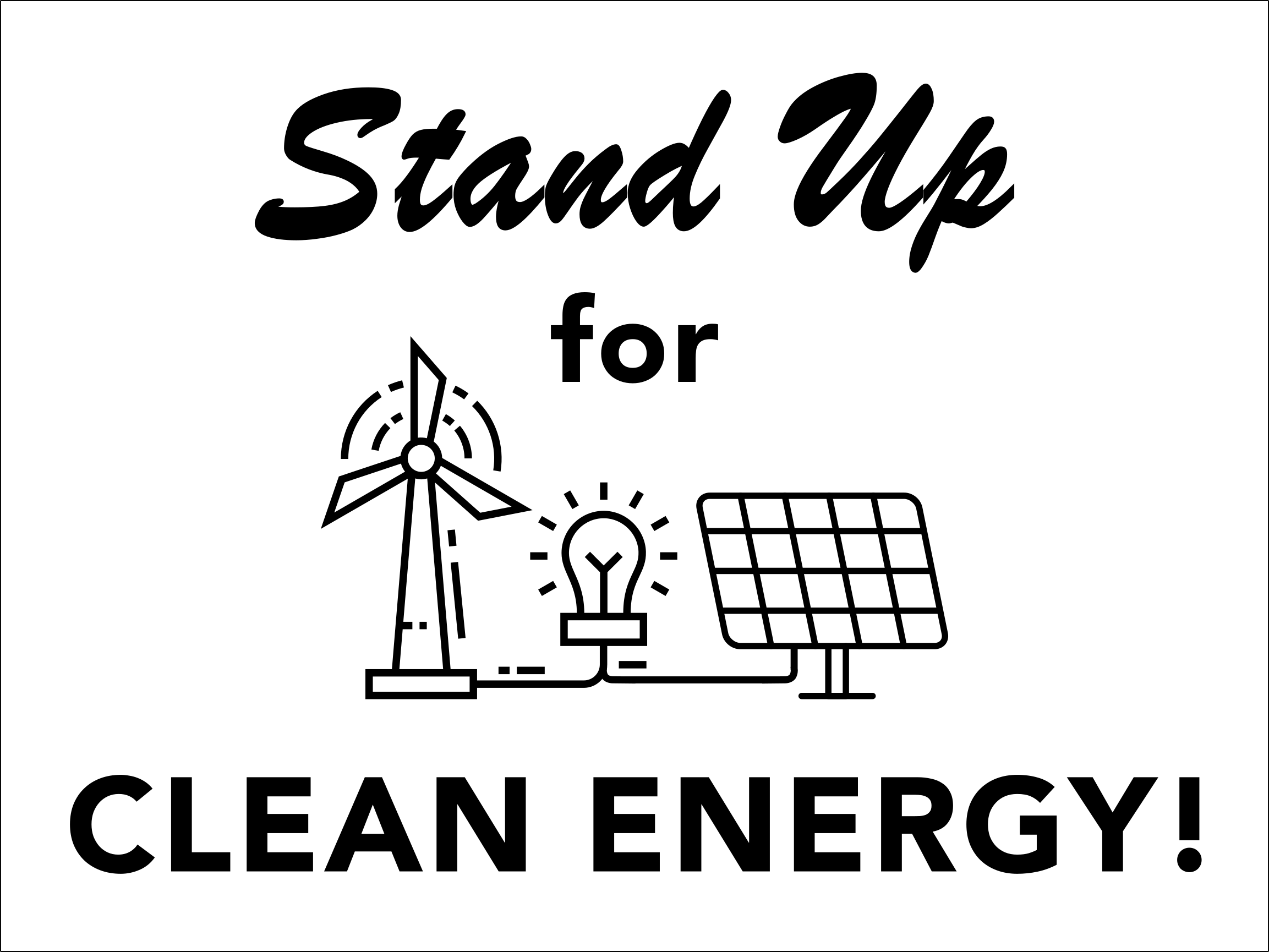 SIGN: “STAND UP for Clean Energy.” 24”x18” landscape orientation. CLICK HERE to download the full size files.