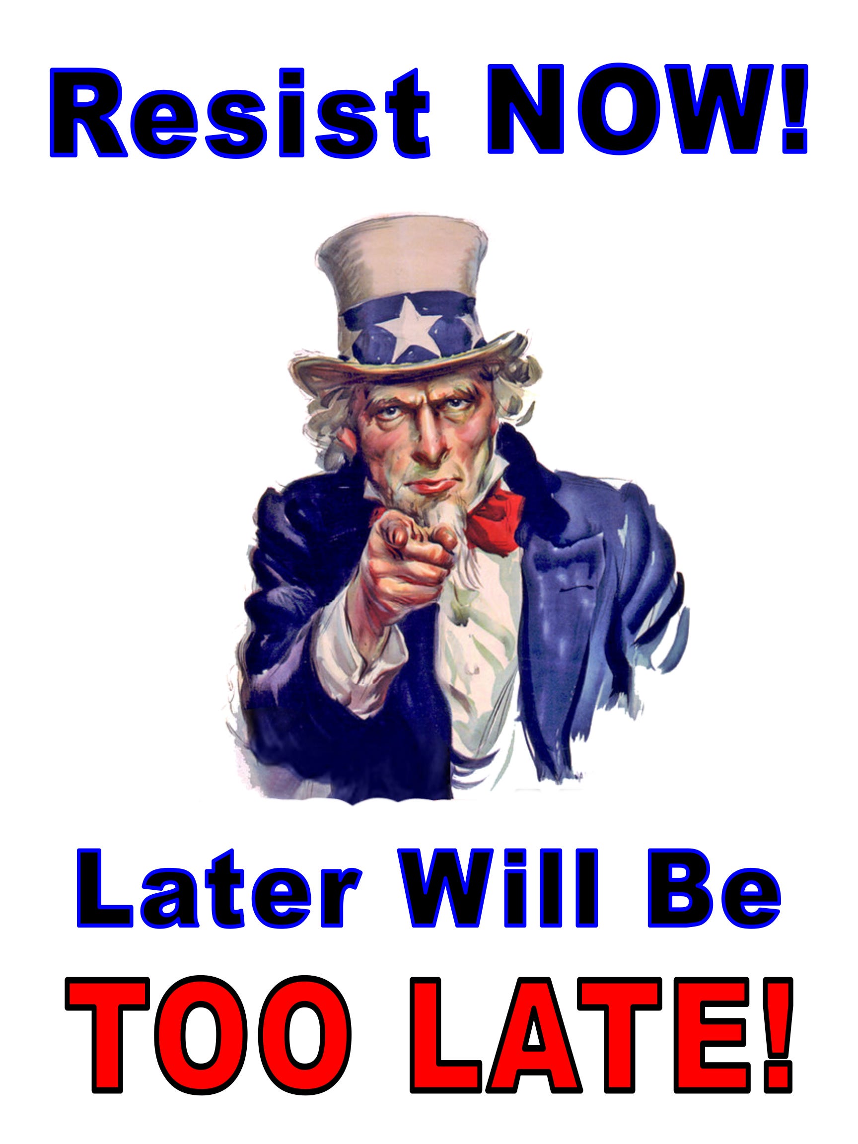 SIGN: “Resist NOW! Later Will Be TOO LATE!” 18”x24” portrait orientation. CLICK HERE to download the full size files.