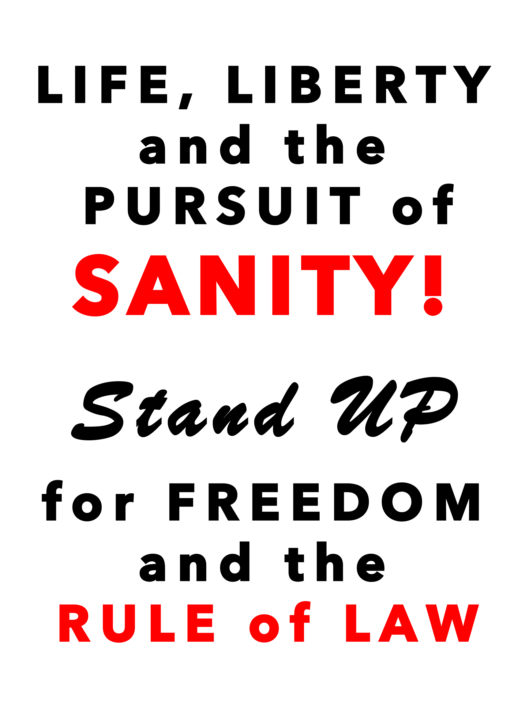 SIGN: “LIFE, LIBERTY and the PURSUIT of SANITY - Stand Up for FREEDOM and the RIULE OF LAW!” 18”x24” portrait orientation. CLICK HERE to download the full size files.