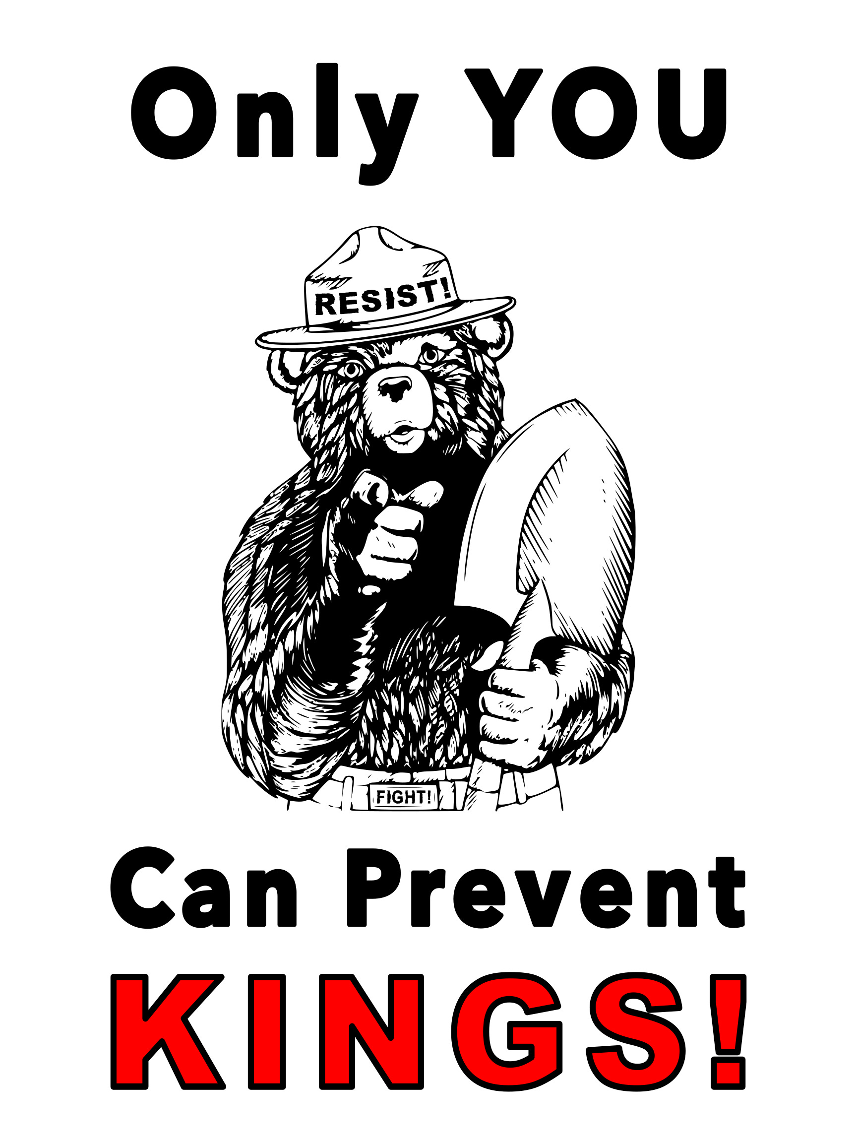 SIGN: “SIGN_Only YOU Can Prevent KINGS!” With Smokey. 18”x24” portrait orientation. CLICK HERE to download the full size files.