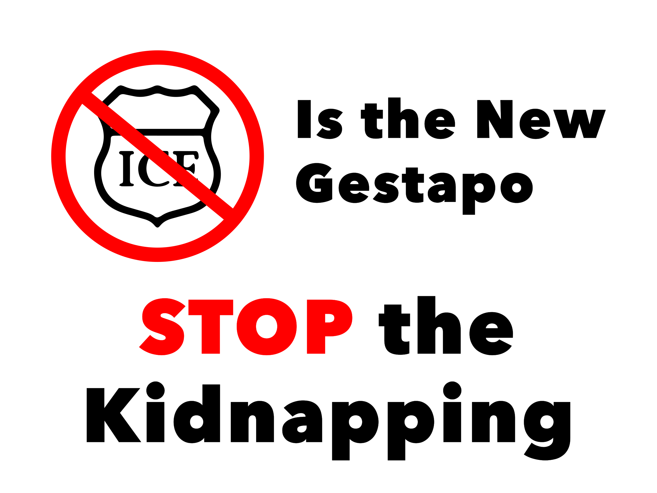 SIGN: “ICE is the New Gestapo - STOP the. KIDNAPPING!” 24”x18” landscape orientation. CLICK HERE to download the full size files:
