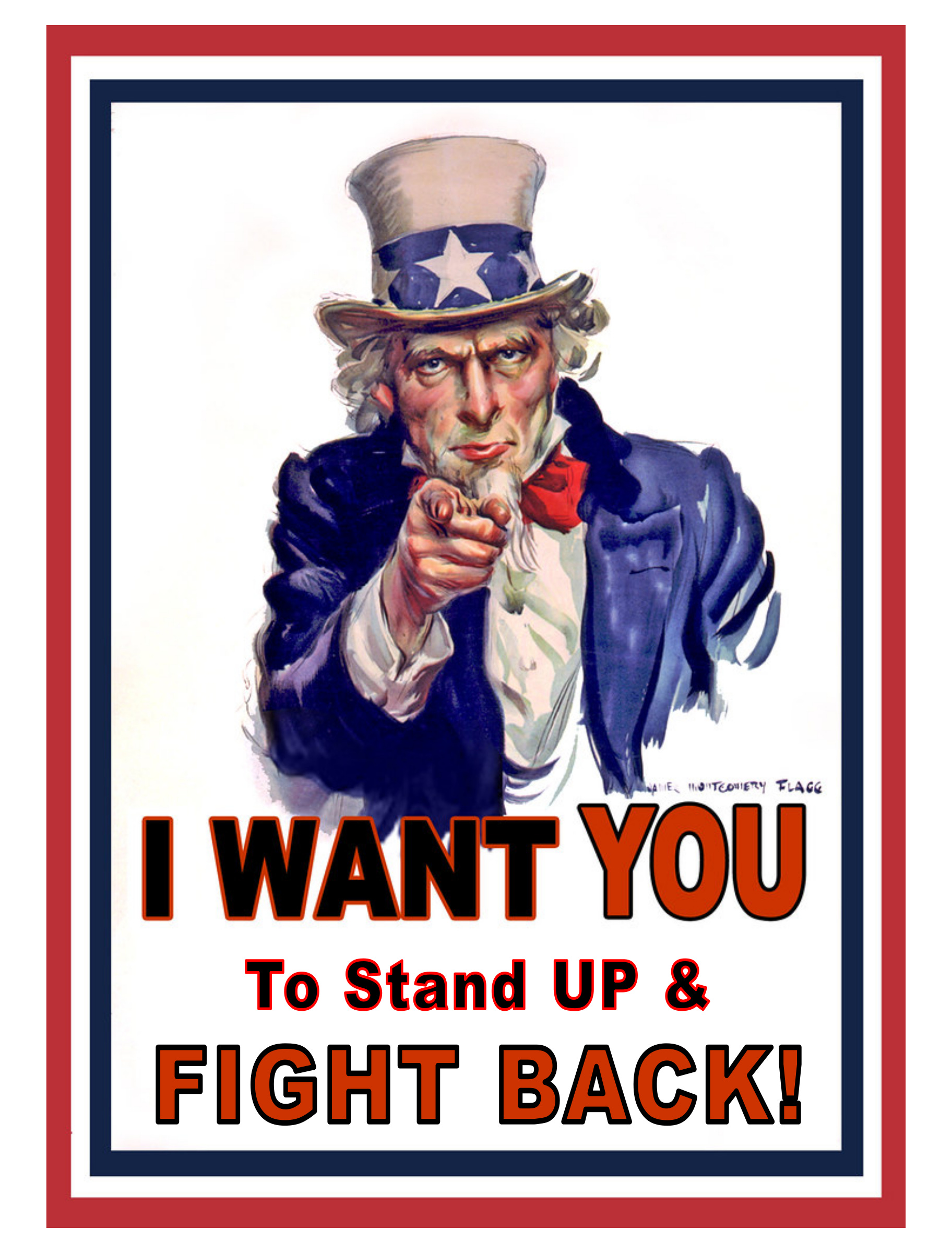 SIGN: “I WANT YOU TO STAND UP & FIGHT BACK!” 18”x24” portrait orientation. CLICK HERE to download the full size files.
