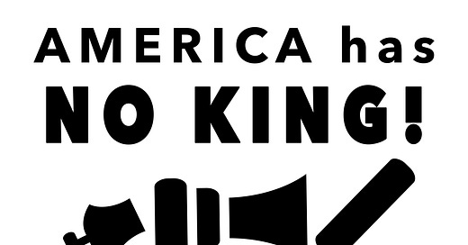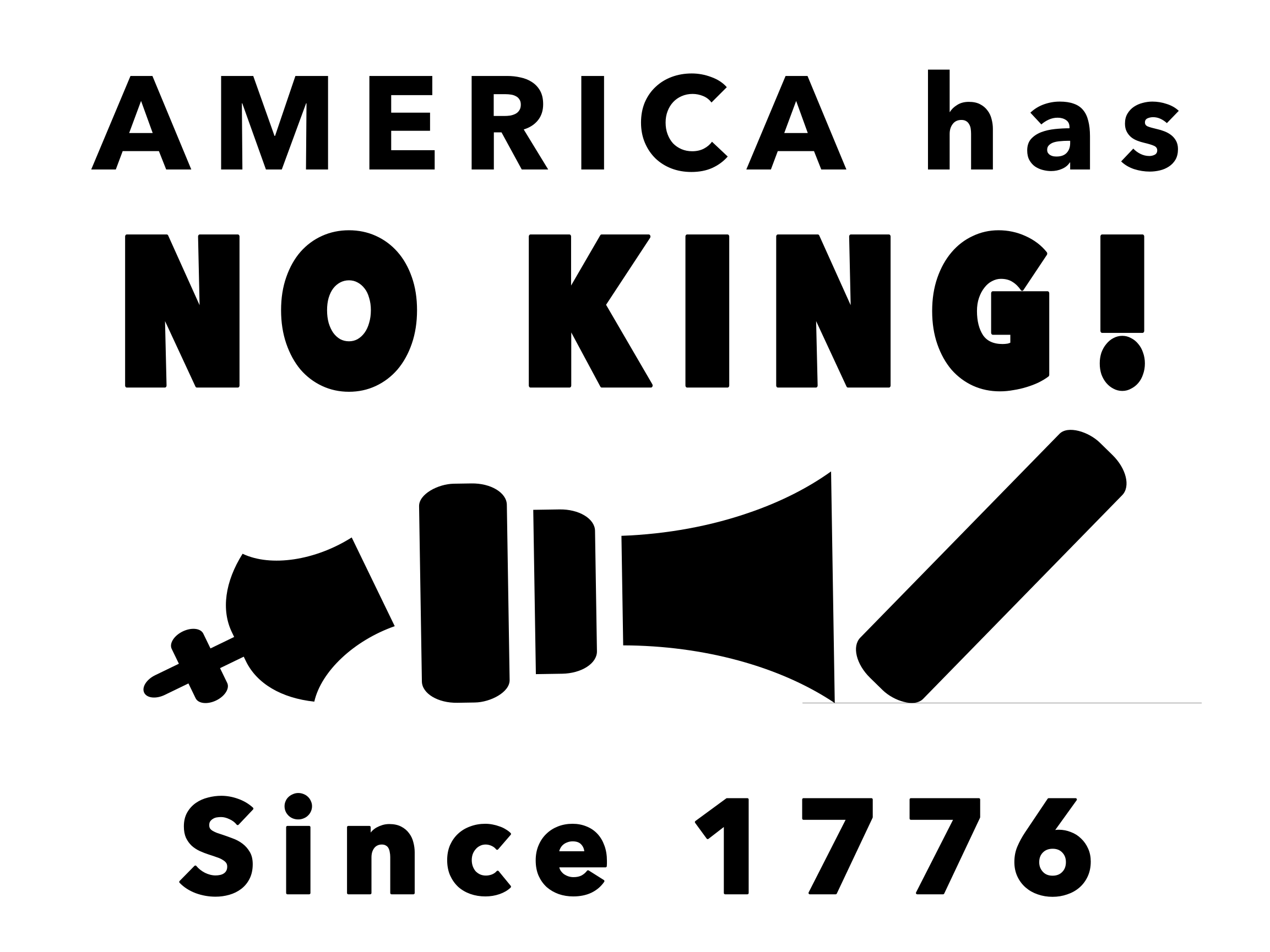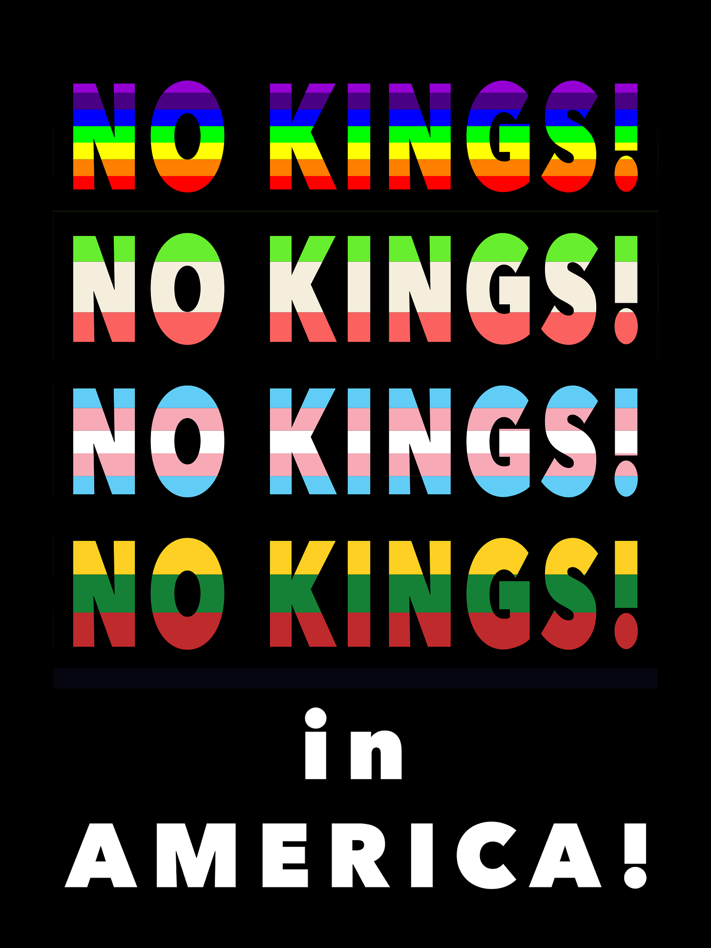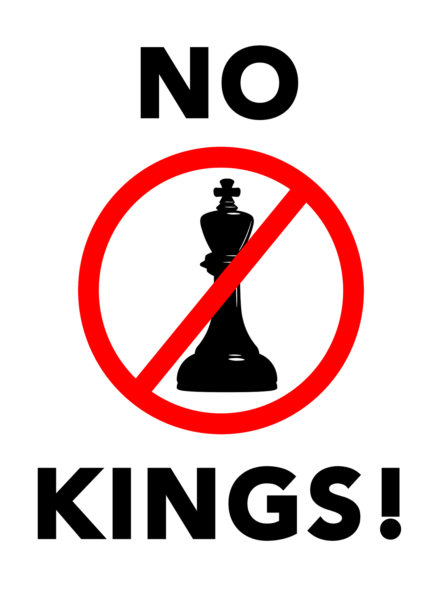 SIGN: “NO KINGS! NO KINGS! NO KINGS! NO KINGS! in AMERICA!” 18”x24” portrait orientation. CLICK HERE to download the full size files.