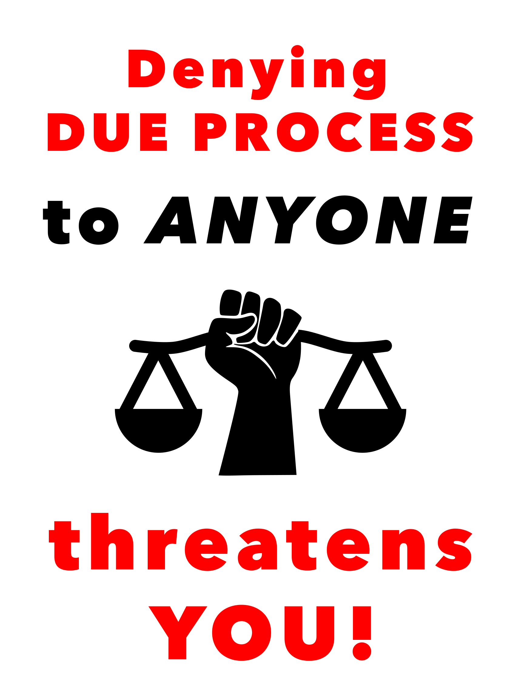 SIGN: “Denying DUE PROCESS to ANYONE Threatens YOU!” 18”x24” portrait orientation. CLICK HERE to download the full size files.