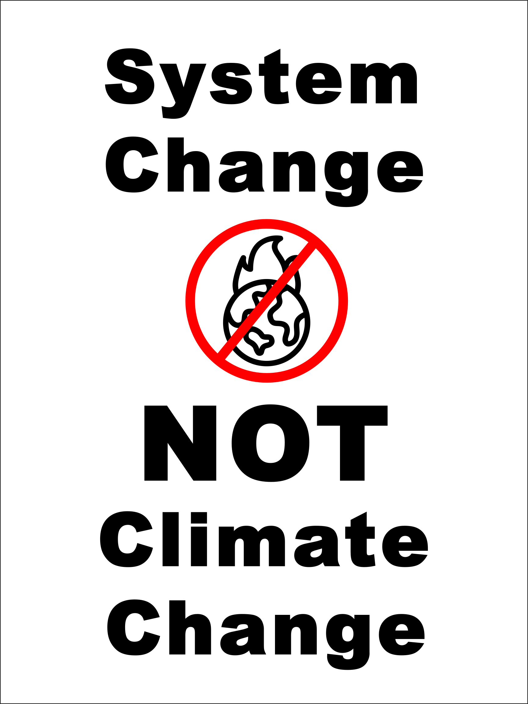 SIGN: “System Change NOT Climate Change.” 18”x24” portrait orientation. CLICK HERE to download the full size files.