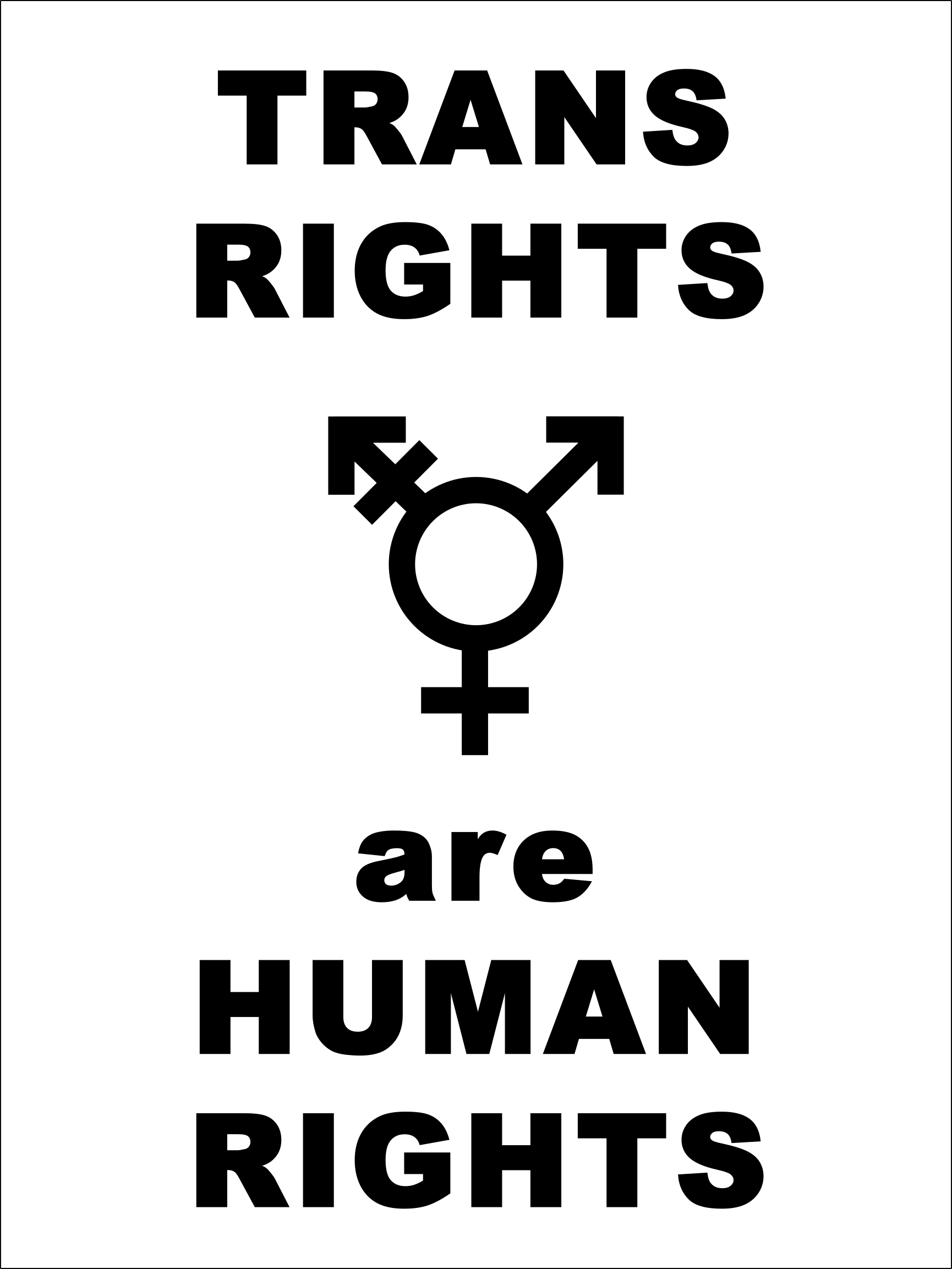 SIGN: “TRANS RIGHTS are HUMAN RIGHTS.” 18”x24” portrait orientation. CLICK HERE to download the full size files.