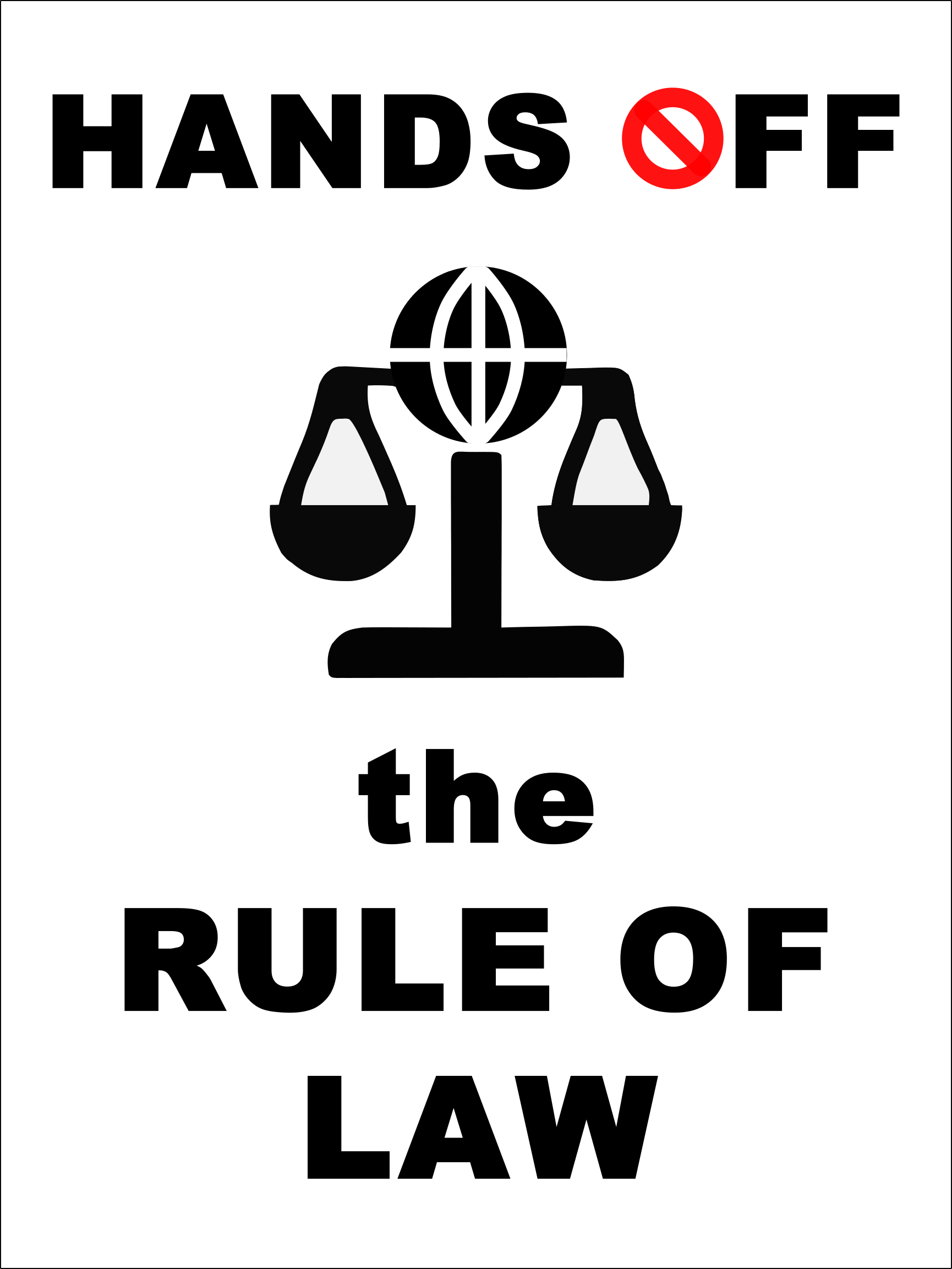 SIGN: “HANDS OFF the RULE OF LAW.” 18”x24” portrait orientation. CLICK HERE to download the full size files.