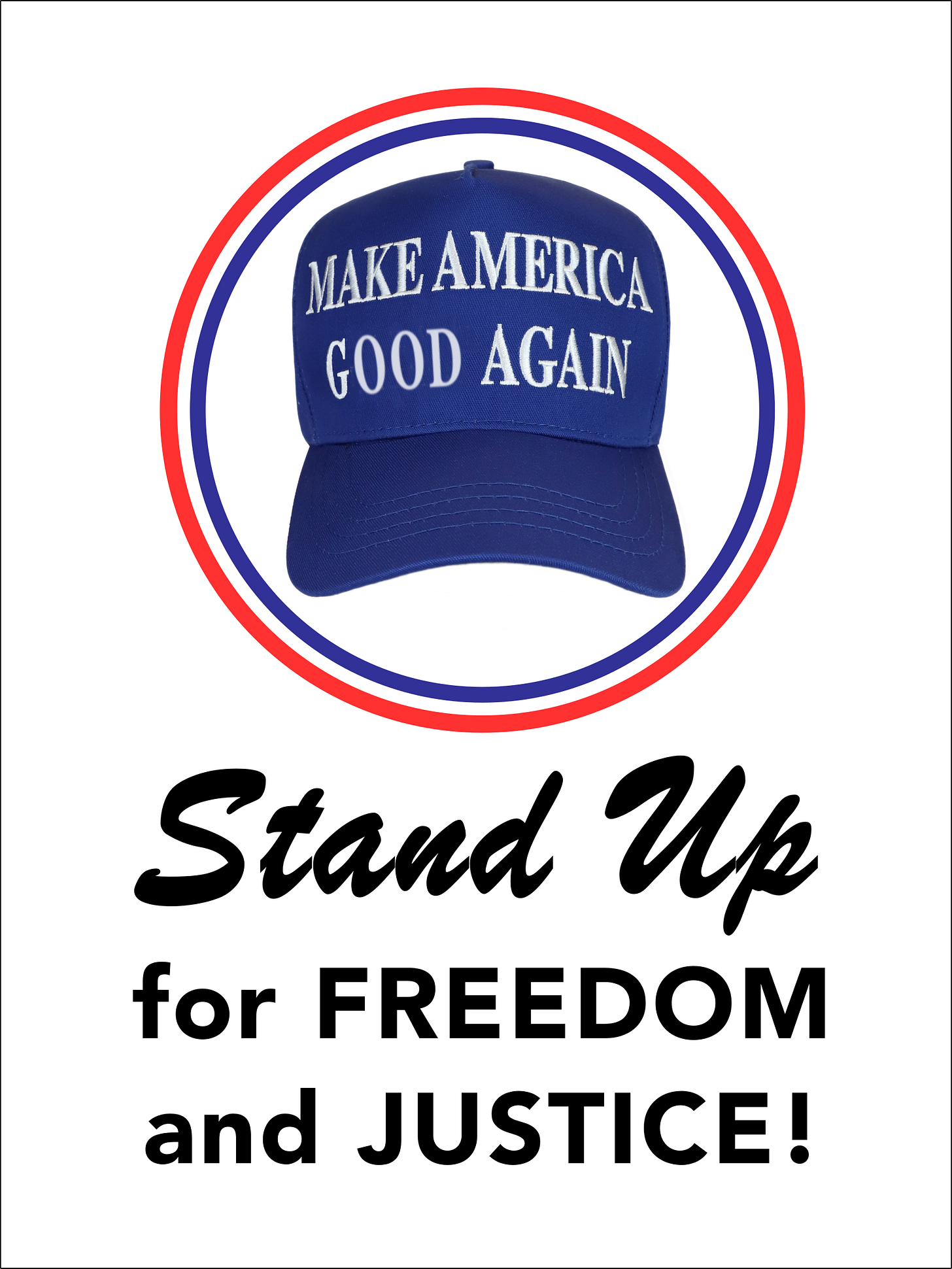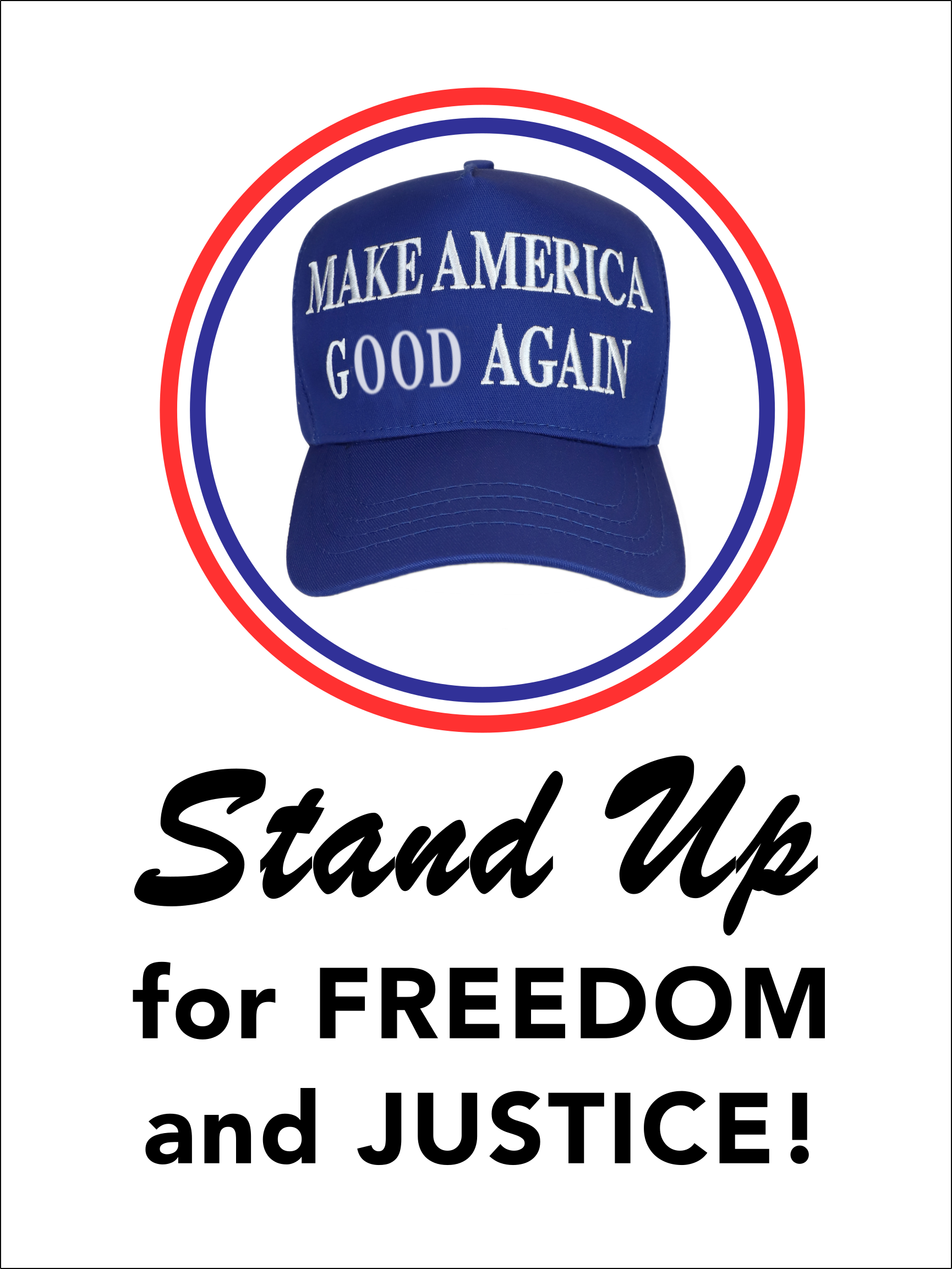 SIGN: “MAKE AMERICA GOOD AGAIN - Stand UP for FREEDOM andJUSTICE!” 18”x24” portrait orientation. CLICK HERE to download the full size files.