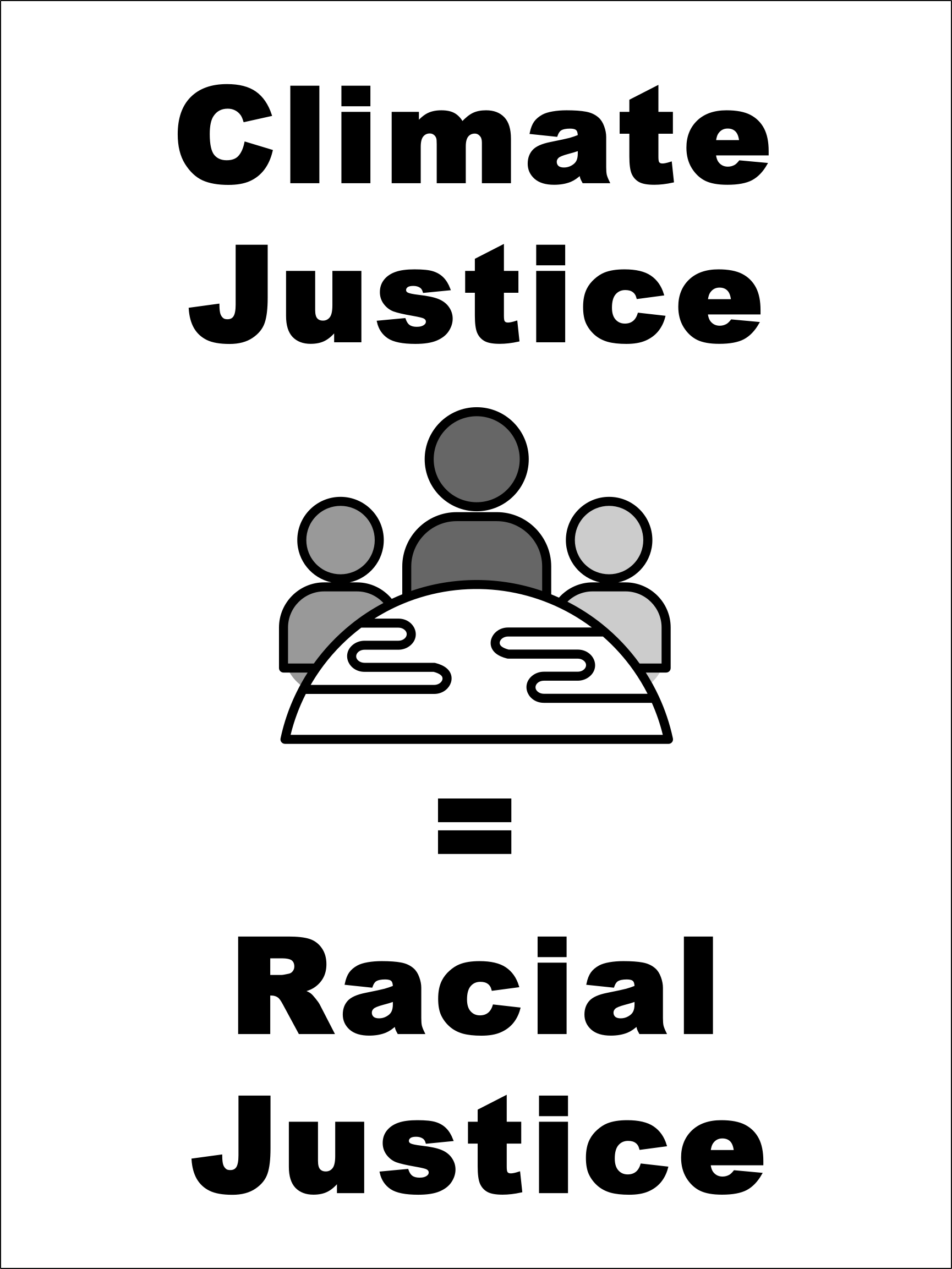 SIGN: “Climate Justice = Racial Justice.” 18”x24” portrait orientation. CLICK HERE to download the full size files.