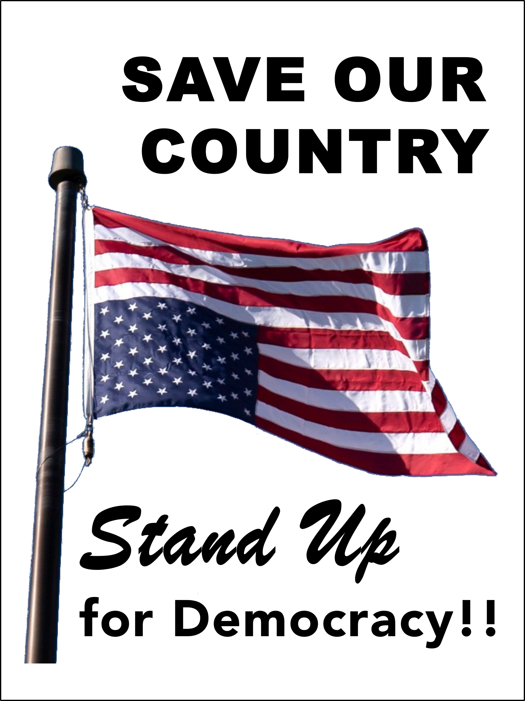 SIGN: “SAVE OUR COUNTRY. Stand Up for Democracy.” 18”x24” portrait orientation. CLICK HERE to download the full size files.