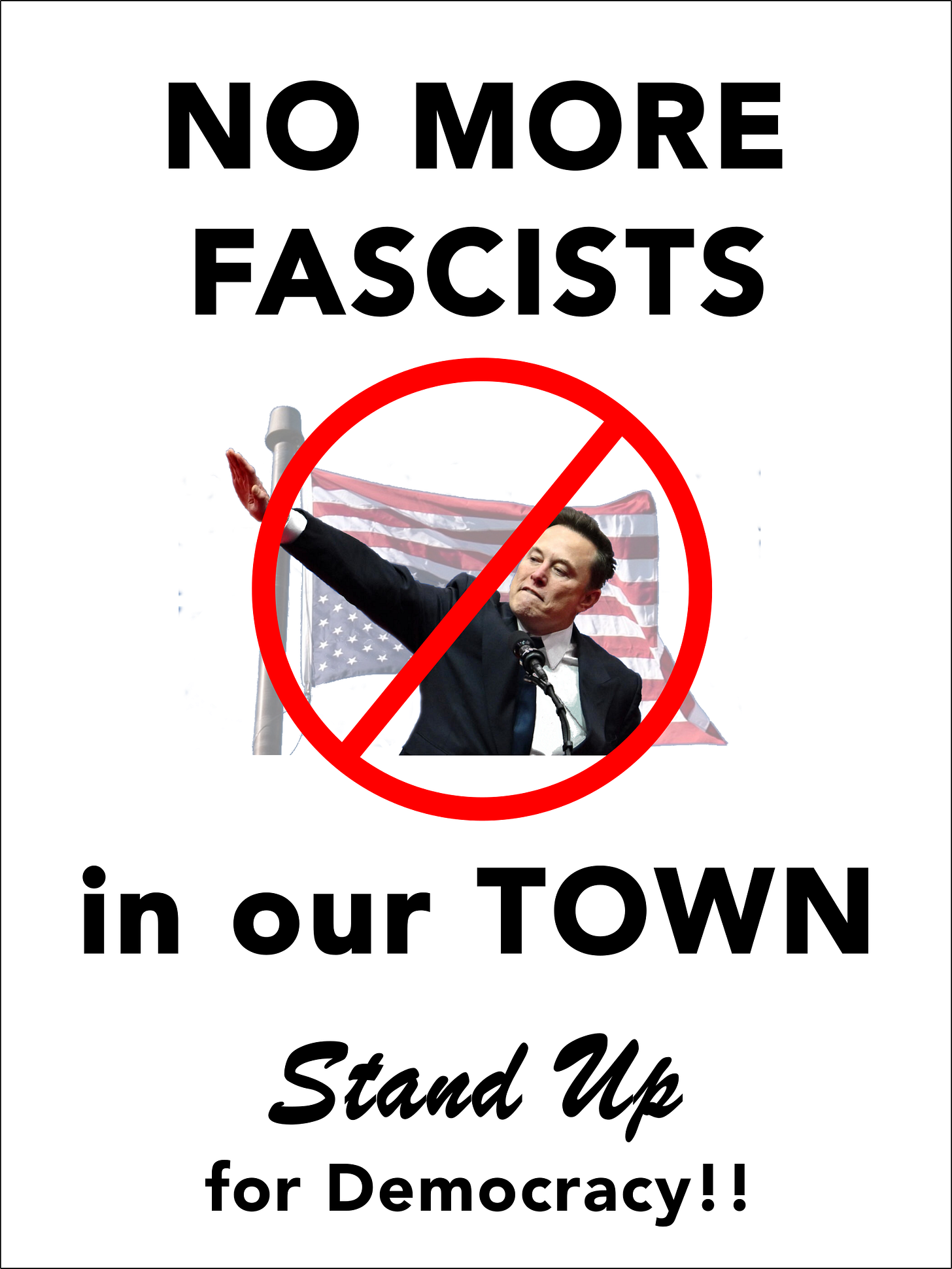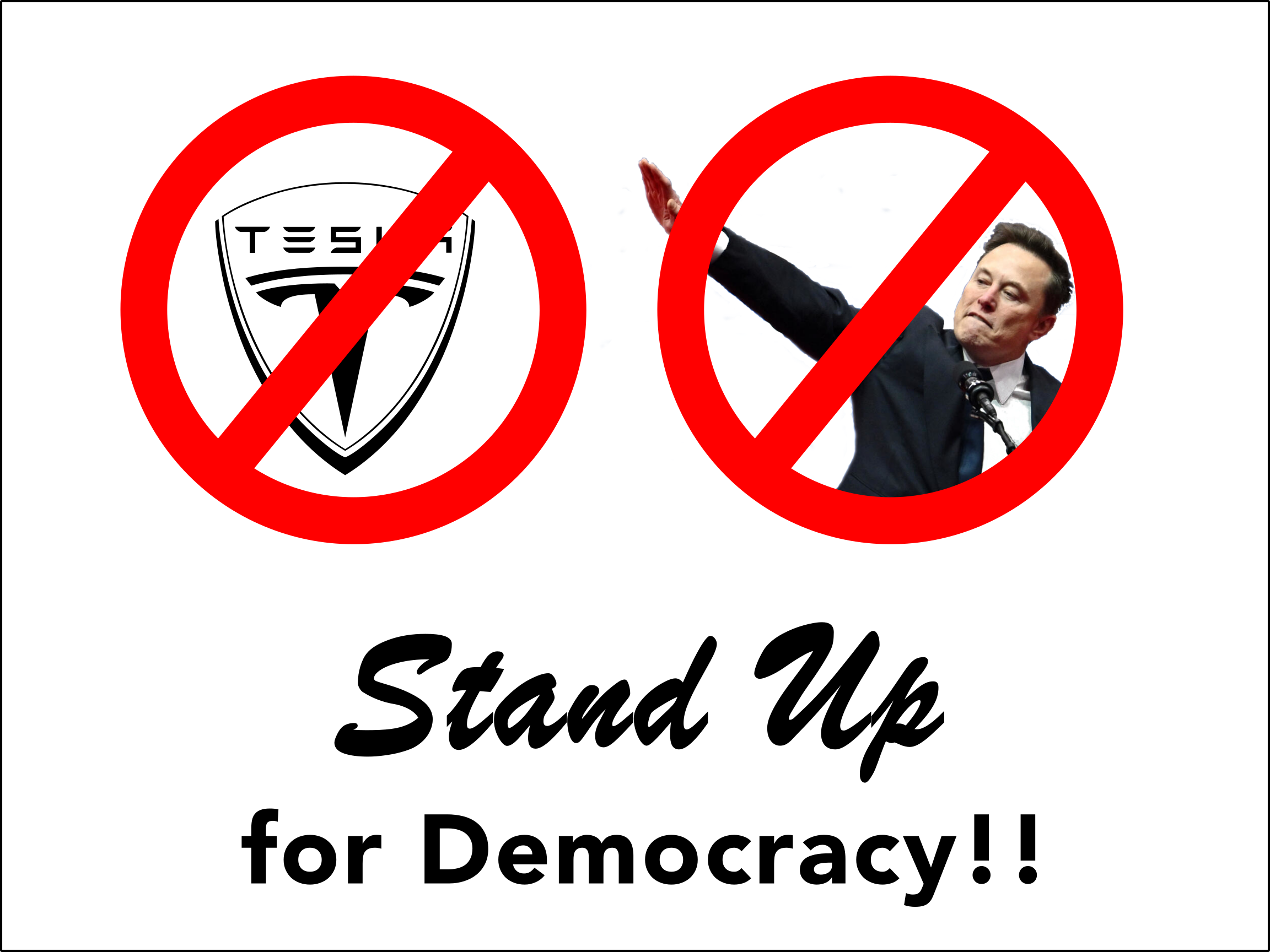 SIGN: “NO Tesla NO Musk - Stand Up for Democracy.” 24”x18” landscape orientation. CLICK HERE to download the full size files.
