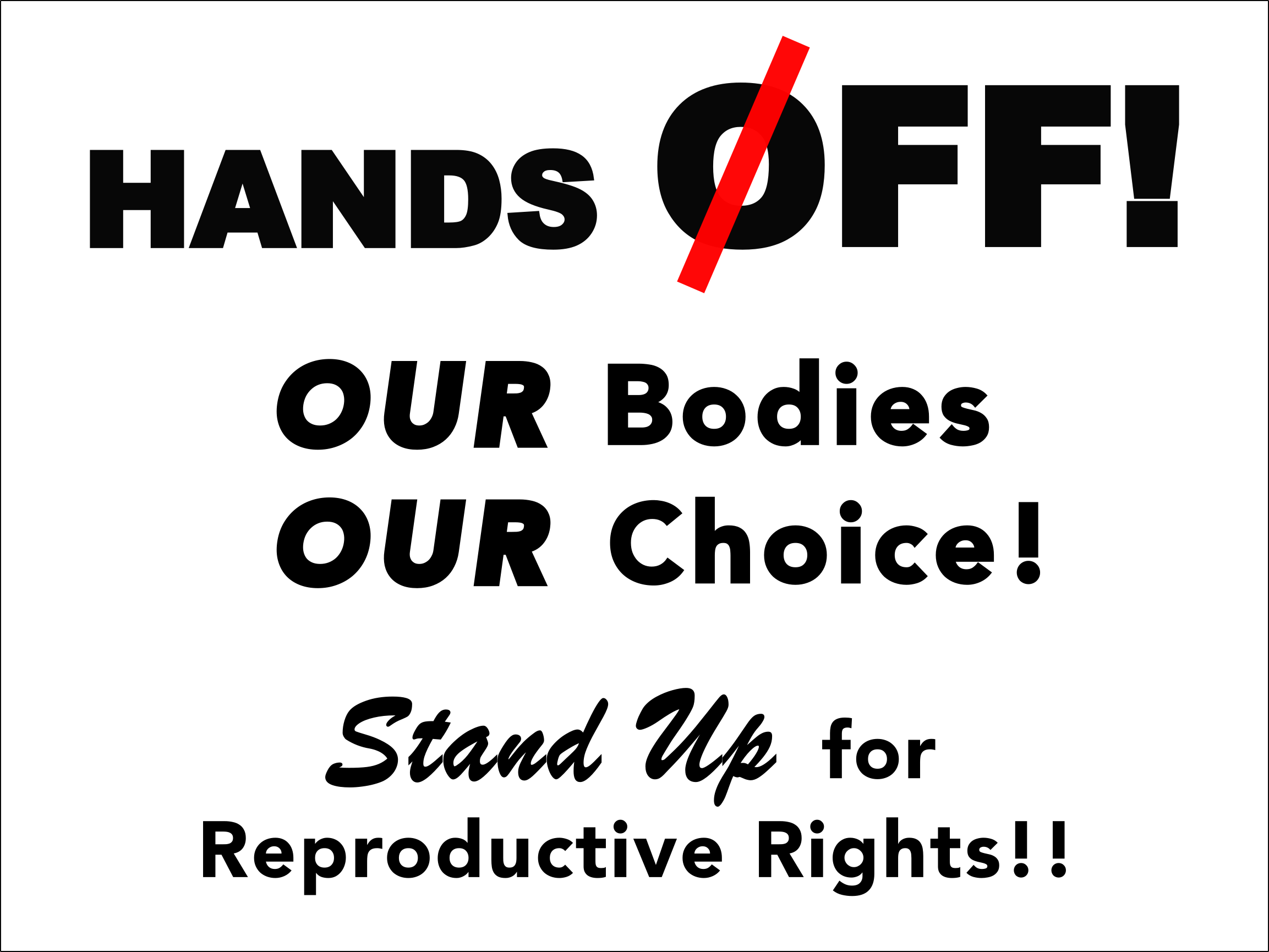SIGN: “HANDS OFF! - OUR Bodies OUR Choice! - Stand UP for Reproductive Rights.” 24”x18” landscape orientation. CLICK HERE to download the full size files: