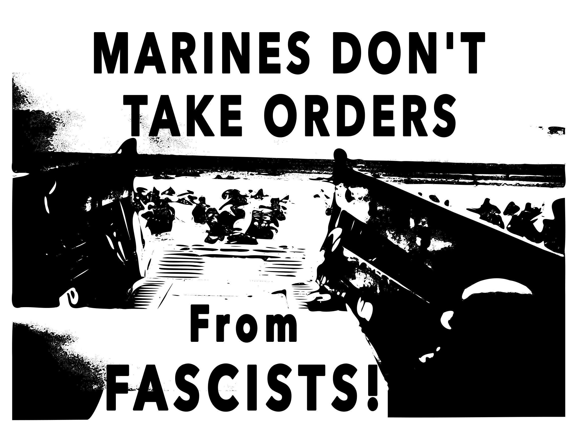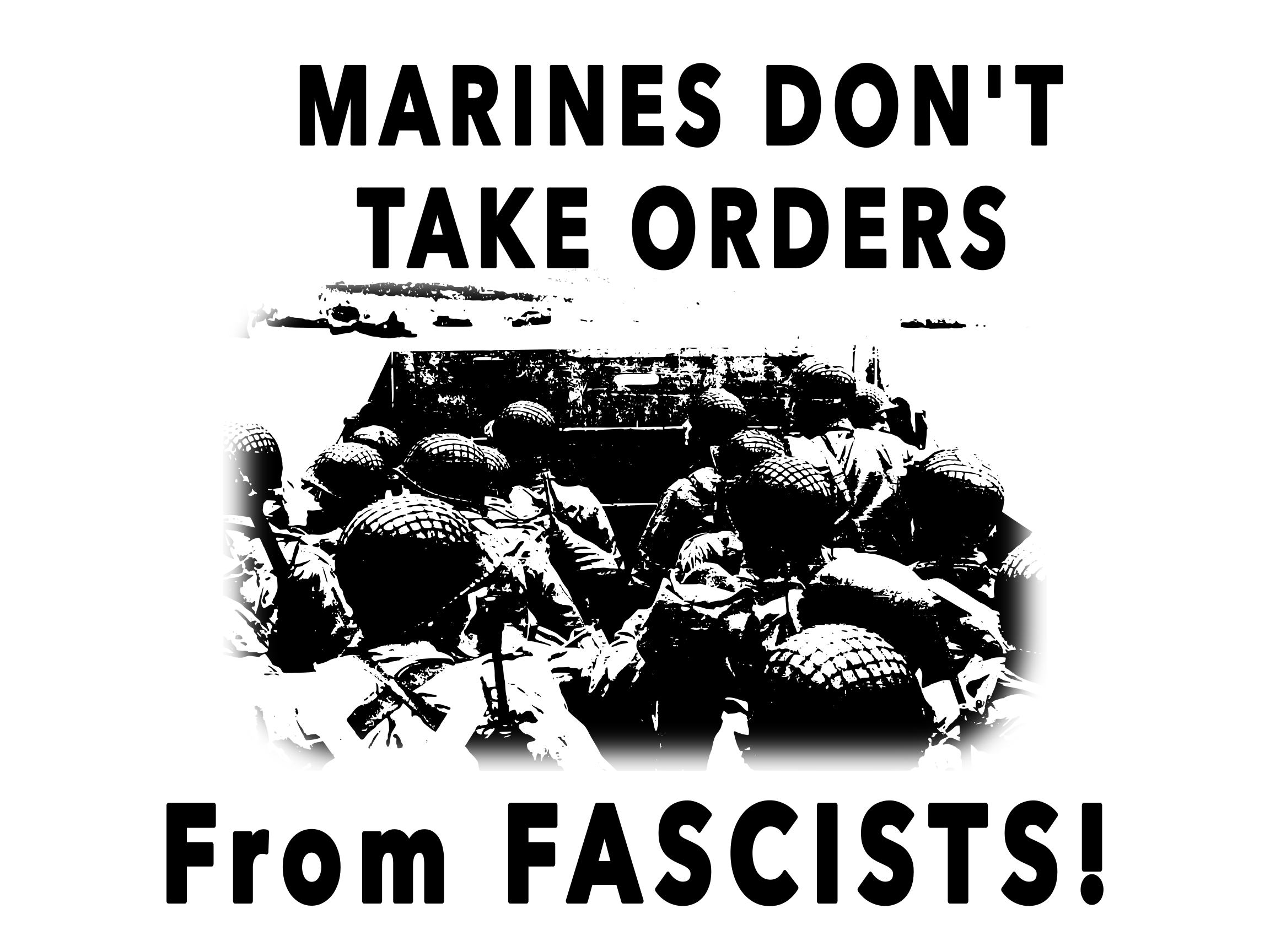 SIGN: “MARINES DON’T TAKE ORDERS From FASCISTS!” (Normandy). 24”x18” landscape orientation. CLICK HERE to download the full size files.