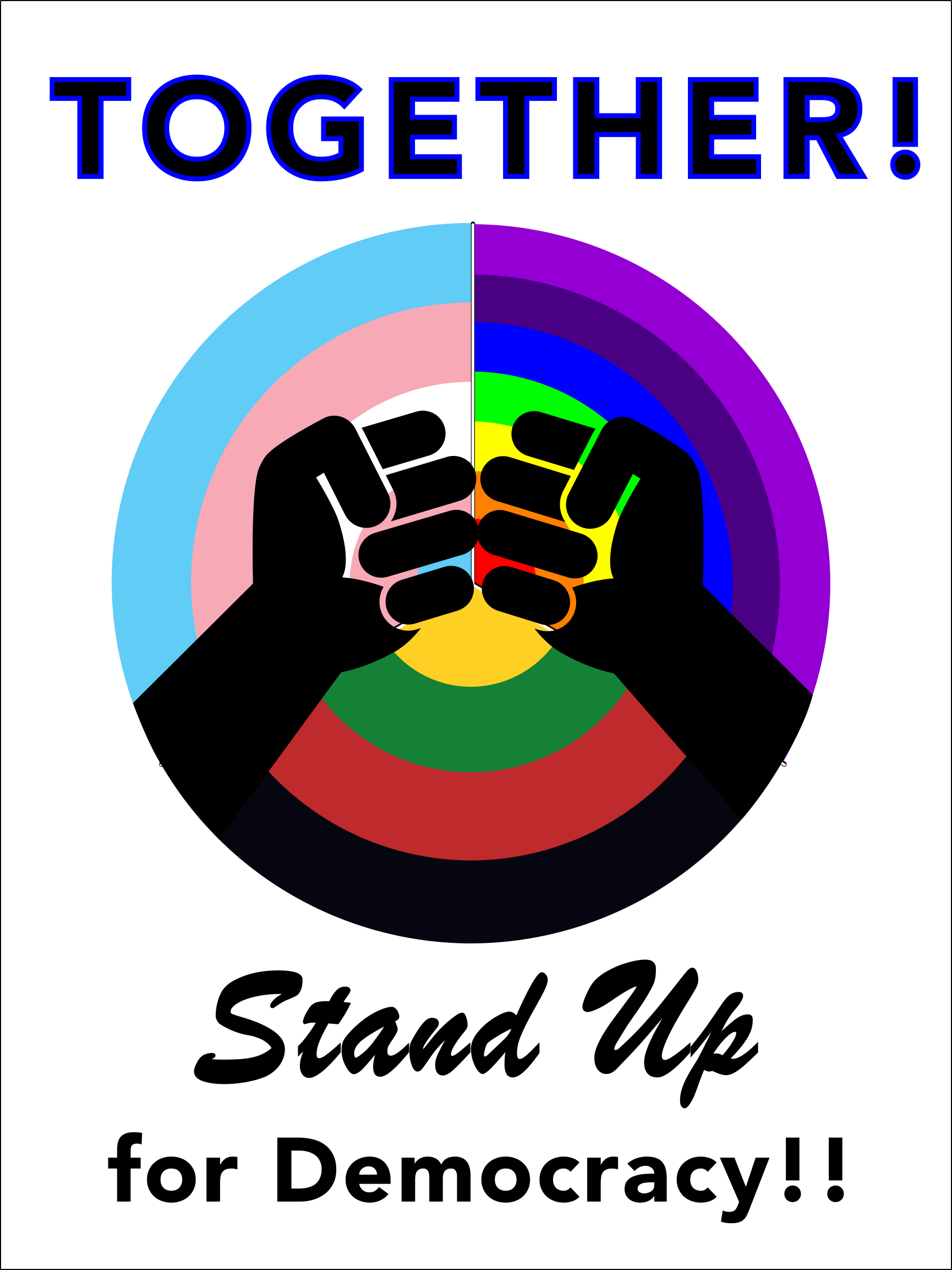 SIGN: “TOGETHER! Stand UP for Democracy.” 18”x24” portrait orientation. CLICK HERE to download the full size files.