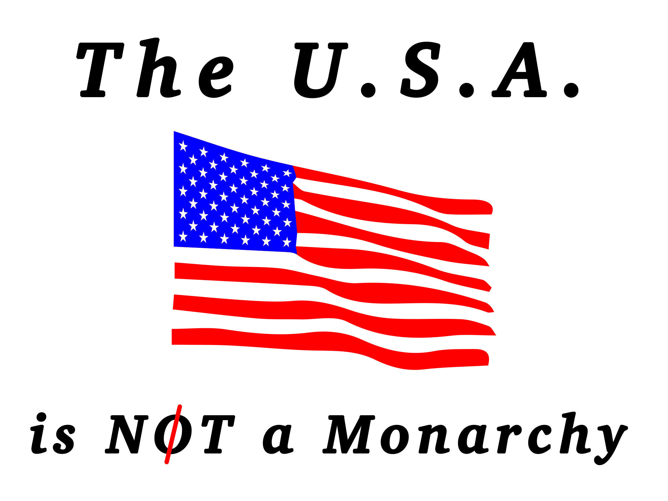 SIGN: “The U.S.A. is NOT a Monarchy!” 24”x18” landscape orientation. CLICK HERE to download the full size files: