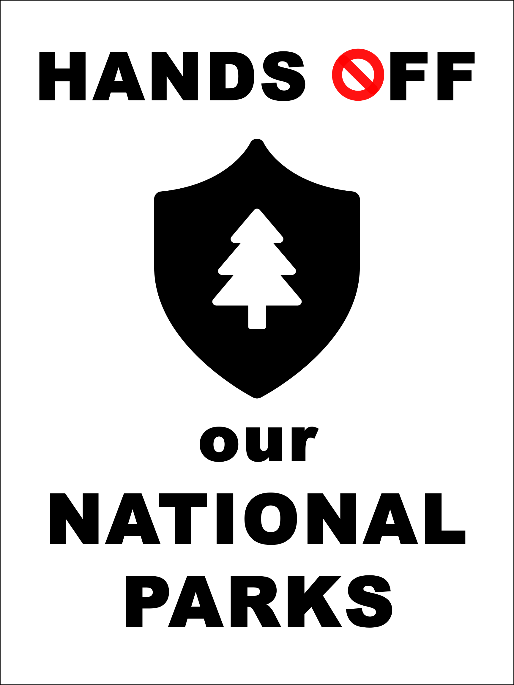 SIGN: “HANDS OFF our NATIONAL PARKS.” 18”x24” portrait orientation. CLICK HERE to download the full size files.