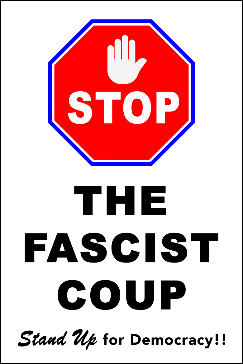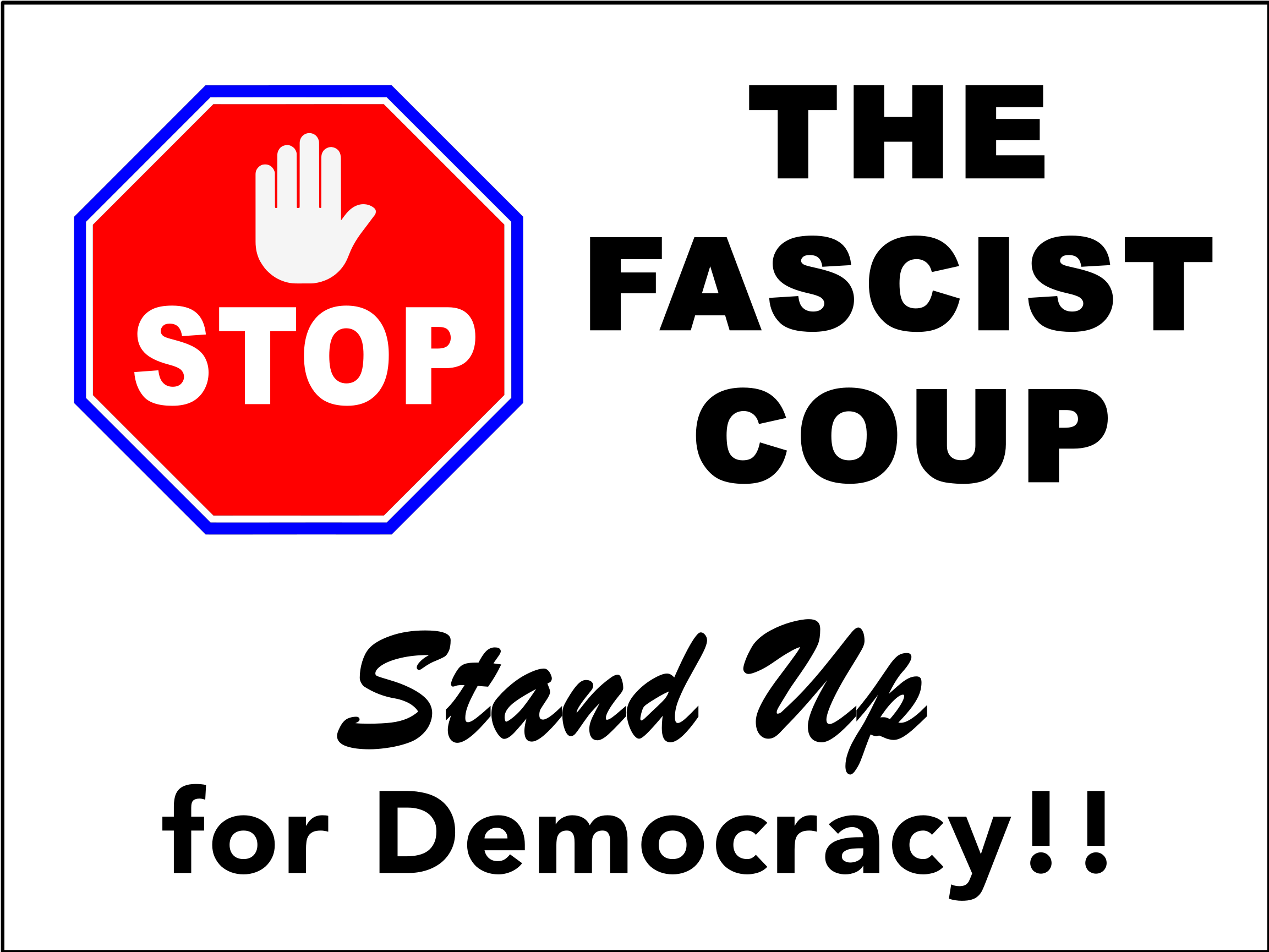 SIGN: “STOP THE FASCIST COUP - Stand Up for Democracy.” 18”x24” portrait orientation. CLICK HERE to download the full size files.