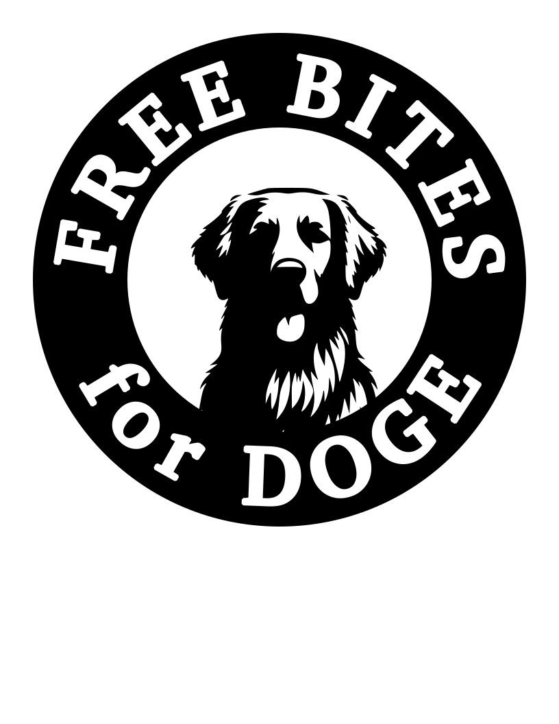 Small SIGN: “FREE BITES for DOGE!” 8.5”x11” portrait orientation. CLICK HERE to download the full size files.