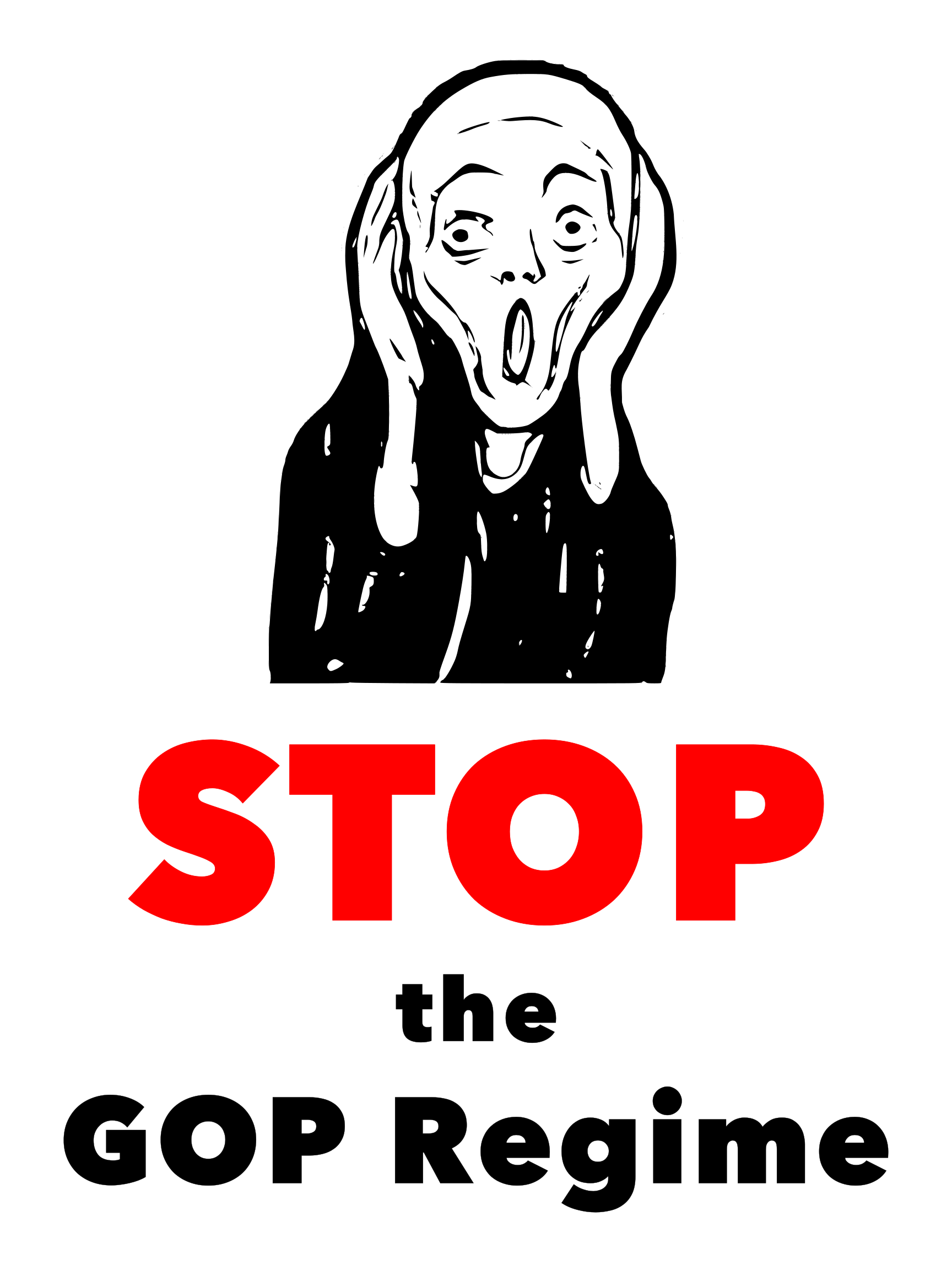 SIGN: “STOP the GOP Regime!” 18”x24” portrait orientation. CLICK HERE to download the full size files.