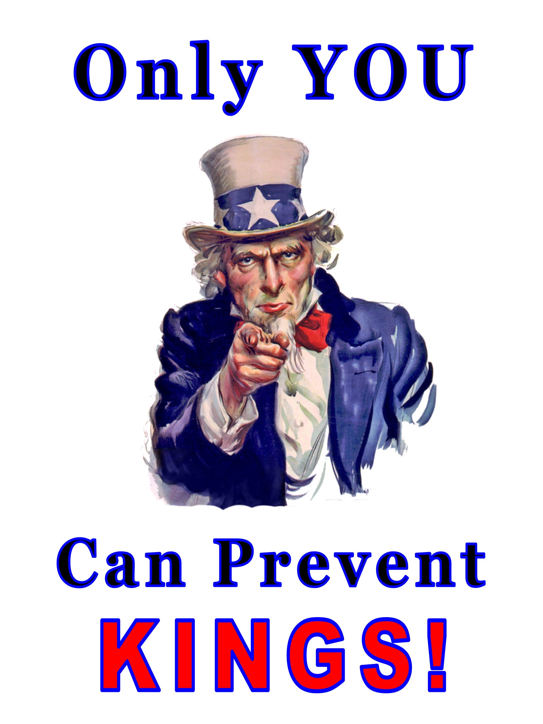 SIGN: “SIGN_Only YOU Can Prevent KINGS!” With Uncle Sam. 18”x24” portrait orientation. CLICK HERE to download the full size files.