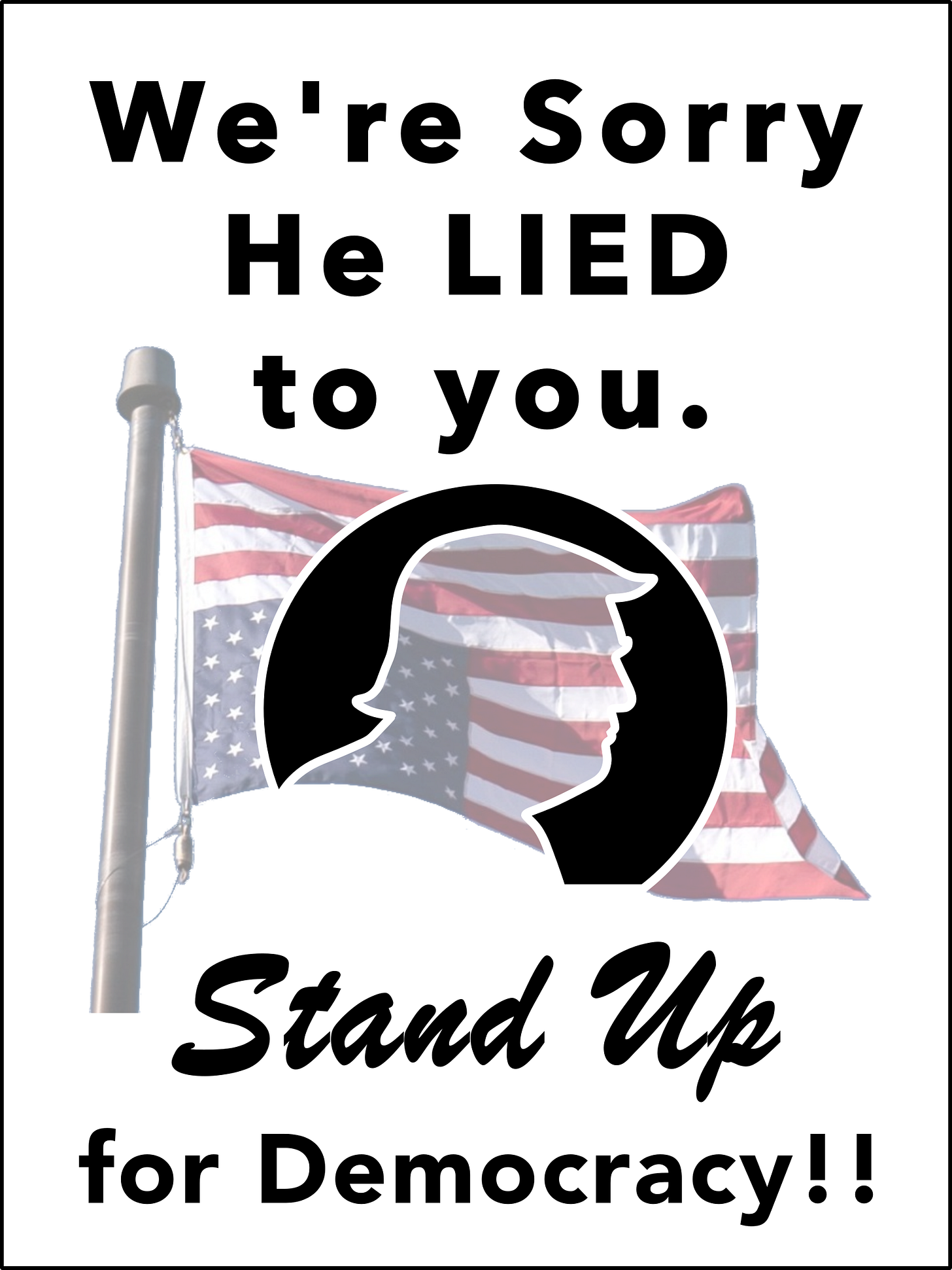 SIGN: “We're Sorry He LIED To You - Stand UP for Democracy!” 18”x24” portrait orientation. CLICK HERE to download the full size files.