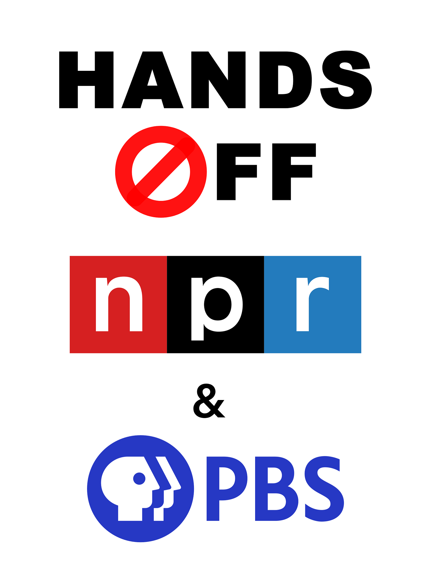 SIGN: “HANDS OFF NPR & PBS!” 18”x24” portrait orientation. CLICK HERE to download the full size files.