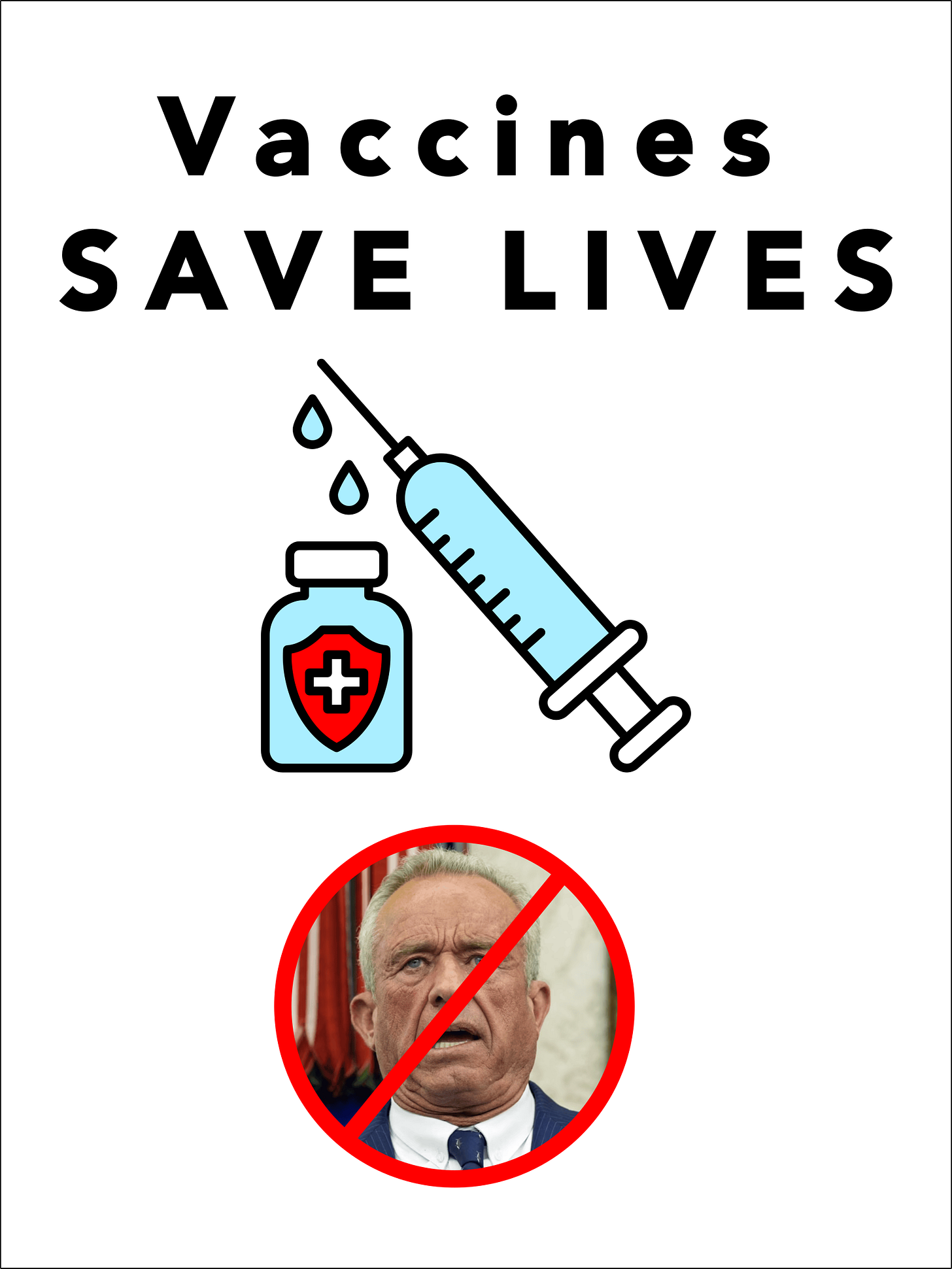 SIGN: “Vaccines SAVE LIVES - NO RFK Jr.” 18”x24” portrait orientation. CLICK HERE to download the full size files.