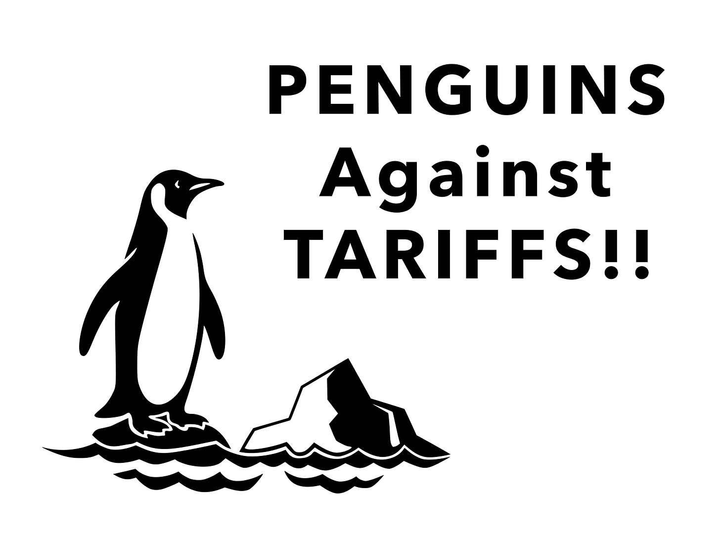SIGN: “PENGUINS Against TARIFFS!” 24”x18” landscape orientation. CLICK HERE to download the full size files: