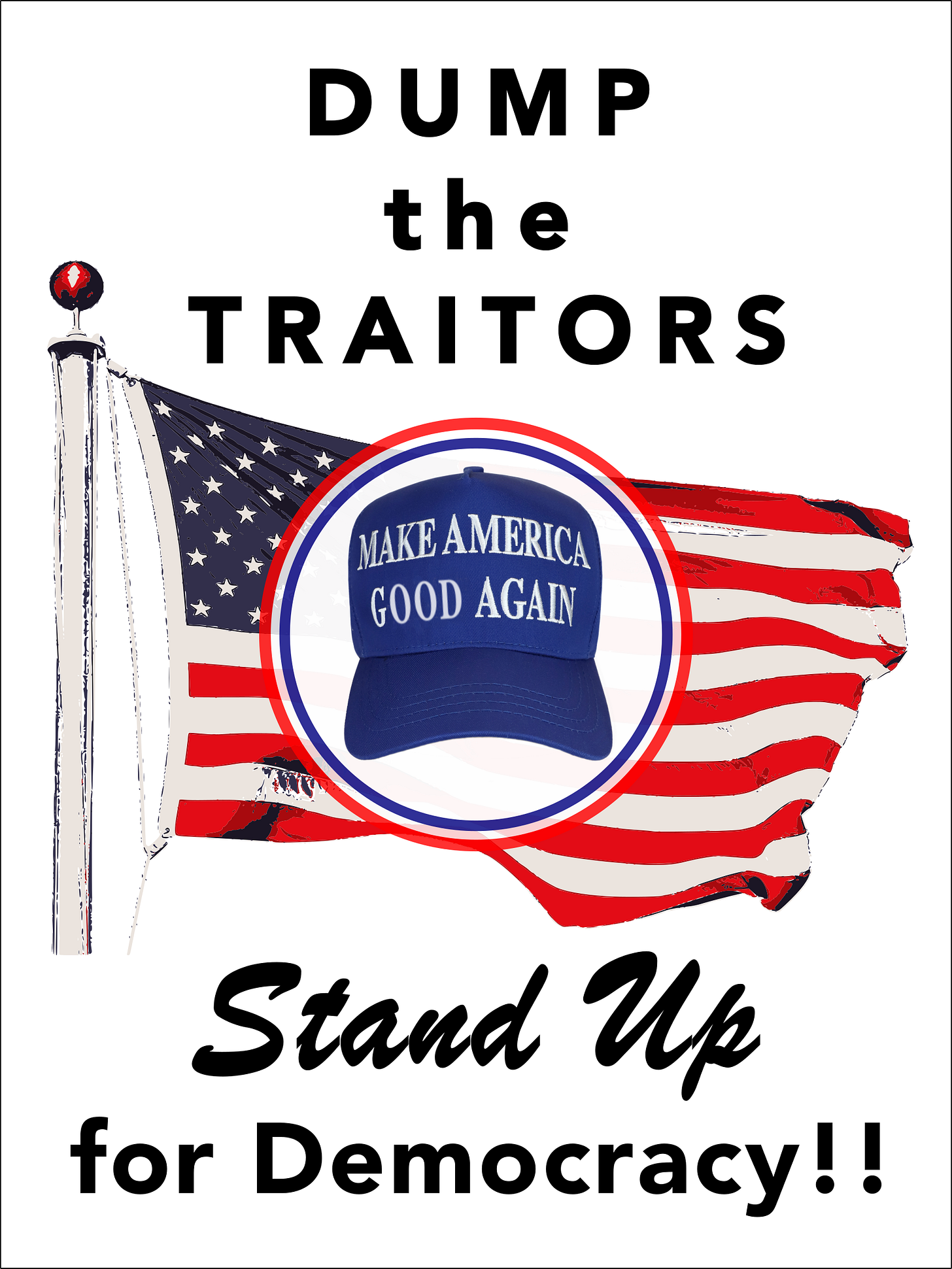 SIGN: “DUMP the TRAITORS - MAKE AMERICA GOOD AGAIN - Stand UP for DEMOCRACY!” 18”x24” portrait orientation. CLICK HERE to download the full size files.