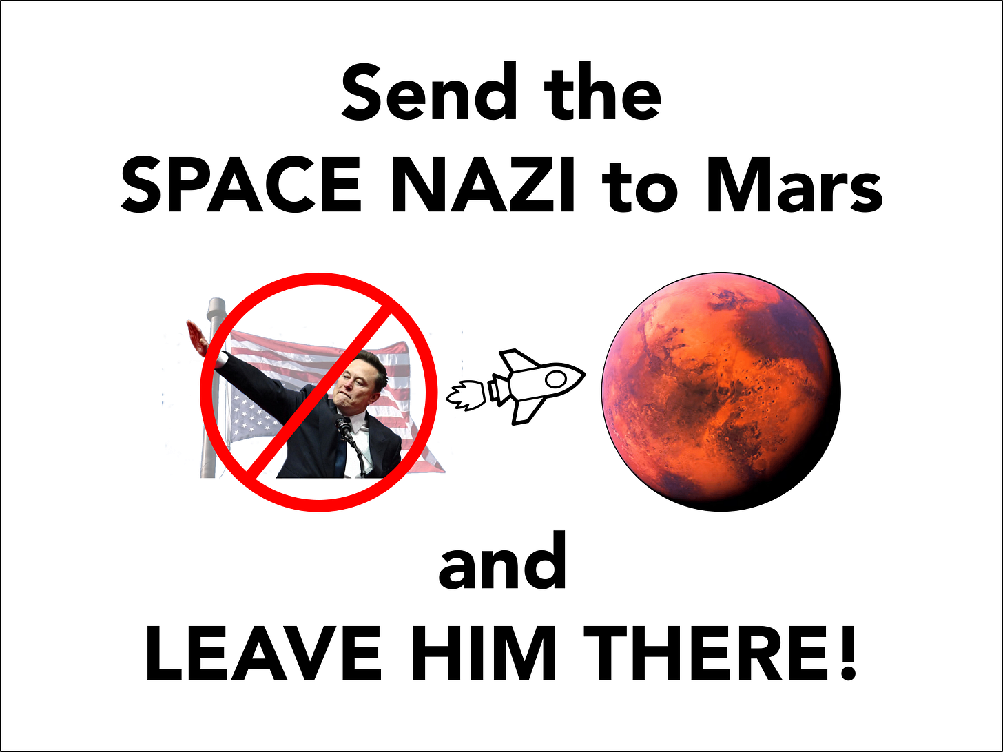 SIGN: “Send the Space Nazi to Mars - and LEAVE HIM THERE!” 18”x24” portrait orientation. CLICK HERE to download the full size files.
