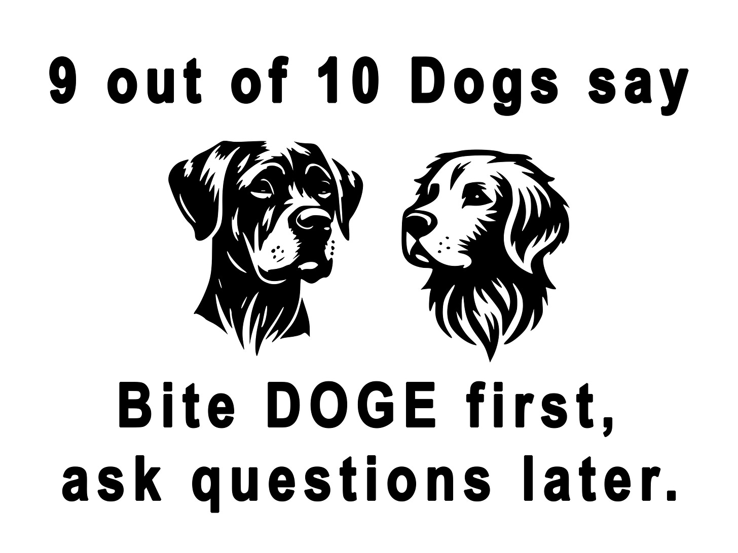 SIGN: “9 out of 10 DOGS Say Bite DOGE First Ask questions Later!” 24”x18” landscape orientation. CLICK HERE to download the full size files.