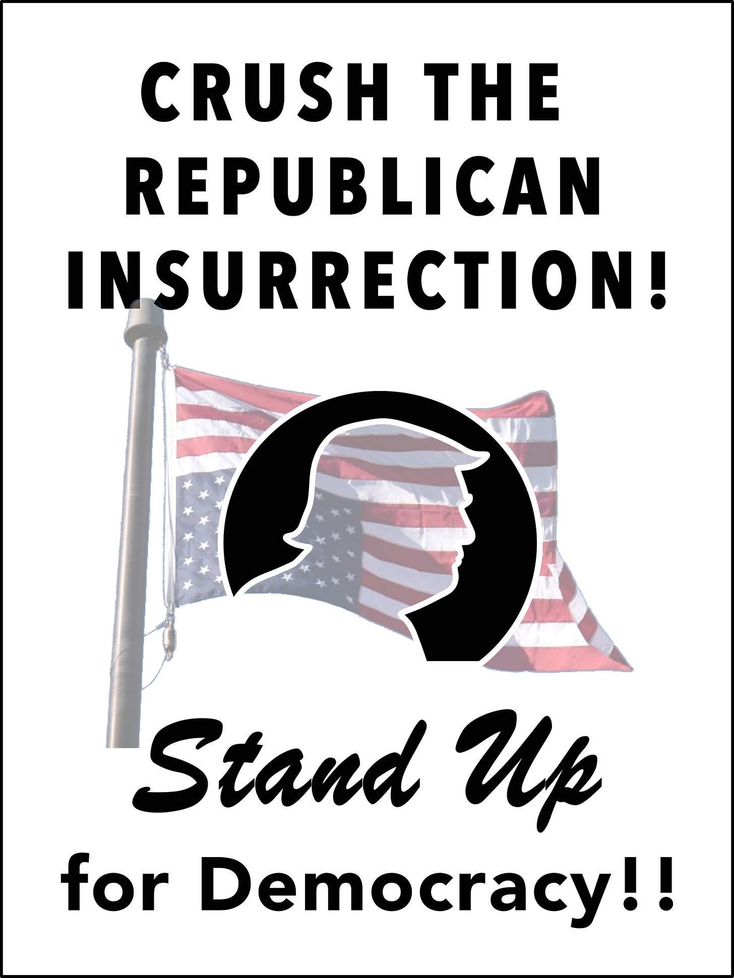 SIGN: “CRUSH THE REPUBLICAN INSURRECTION - Stand UP for Democracy!” 18”x24” portrait orientation. CLICK HERE to download the full size files.