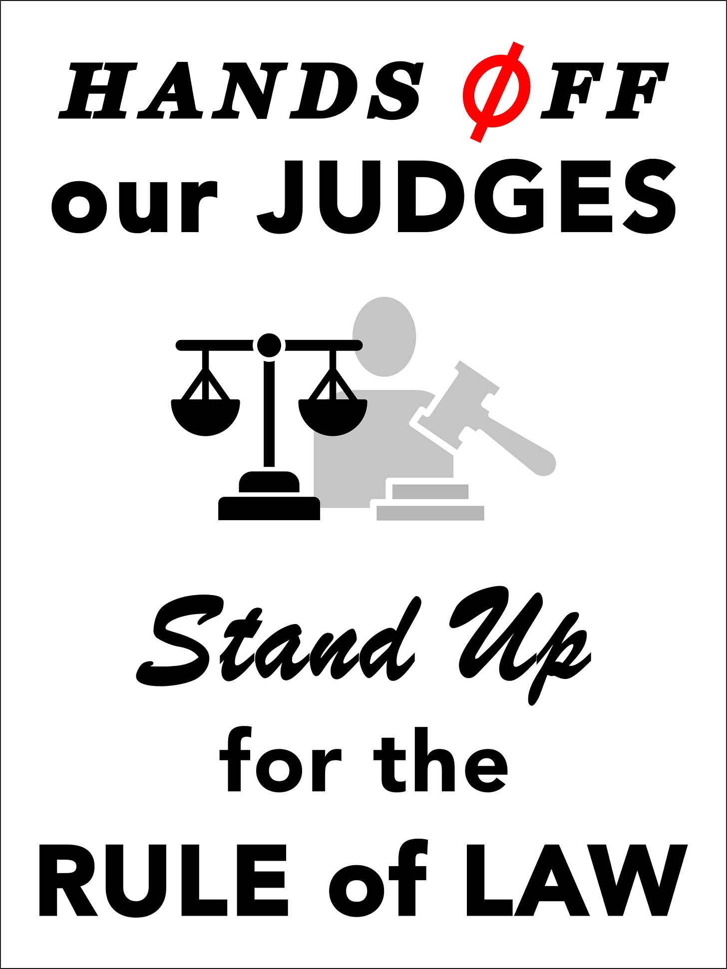SIGN: “HANDS OFF our JUDGES - Stand UP for the RULE of LAW!” 18”x24” portrait orientation. CLICK HERE to download the full size files.