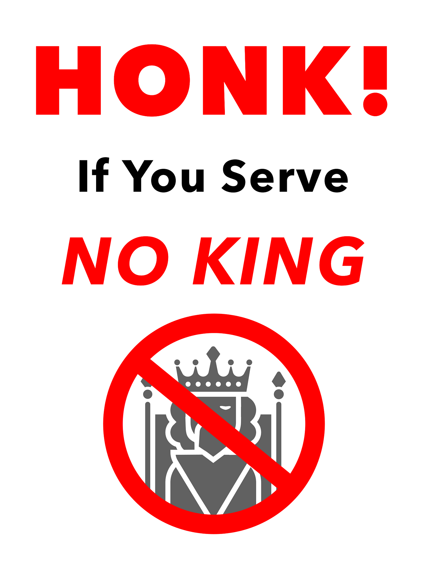 SIGN: “HONK! If You Serve NO KING!” 18”x24” portrait orientation. CLICK HERE to download the full size files.