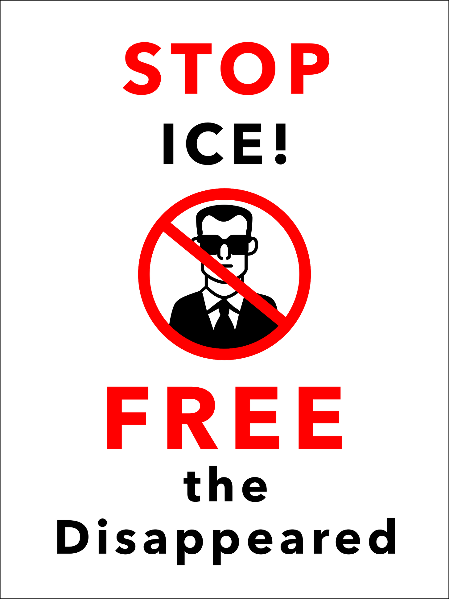 SIGN: “STOP ICE - Free the Disappeared.” 18”x24” portrait orientation. CLICK HERE to download the full size files.