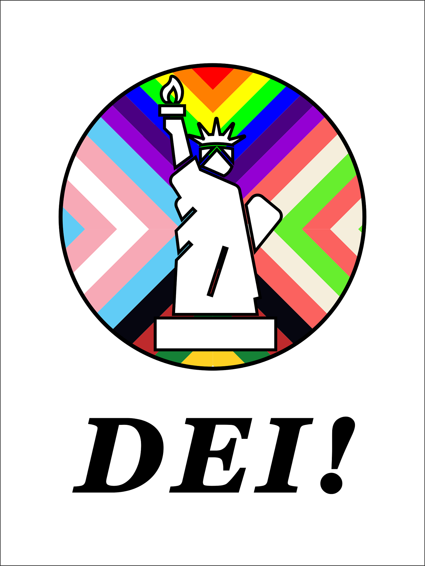 SIGN: “DEI! - with Statue of Liberty on Liberation colors.” 18”x24” portrait orientation. CLICK HERE to download the full size files.