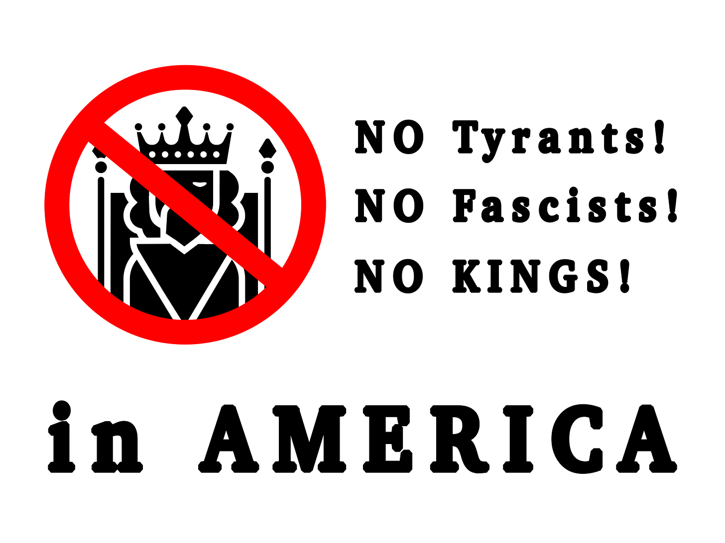 SIGN: “NO Tyrants! NO Fascists! NO KINGS! In America” 24”x18” landscape orientation. CLICK HERE to download the full size files: